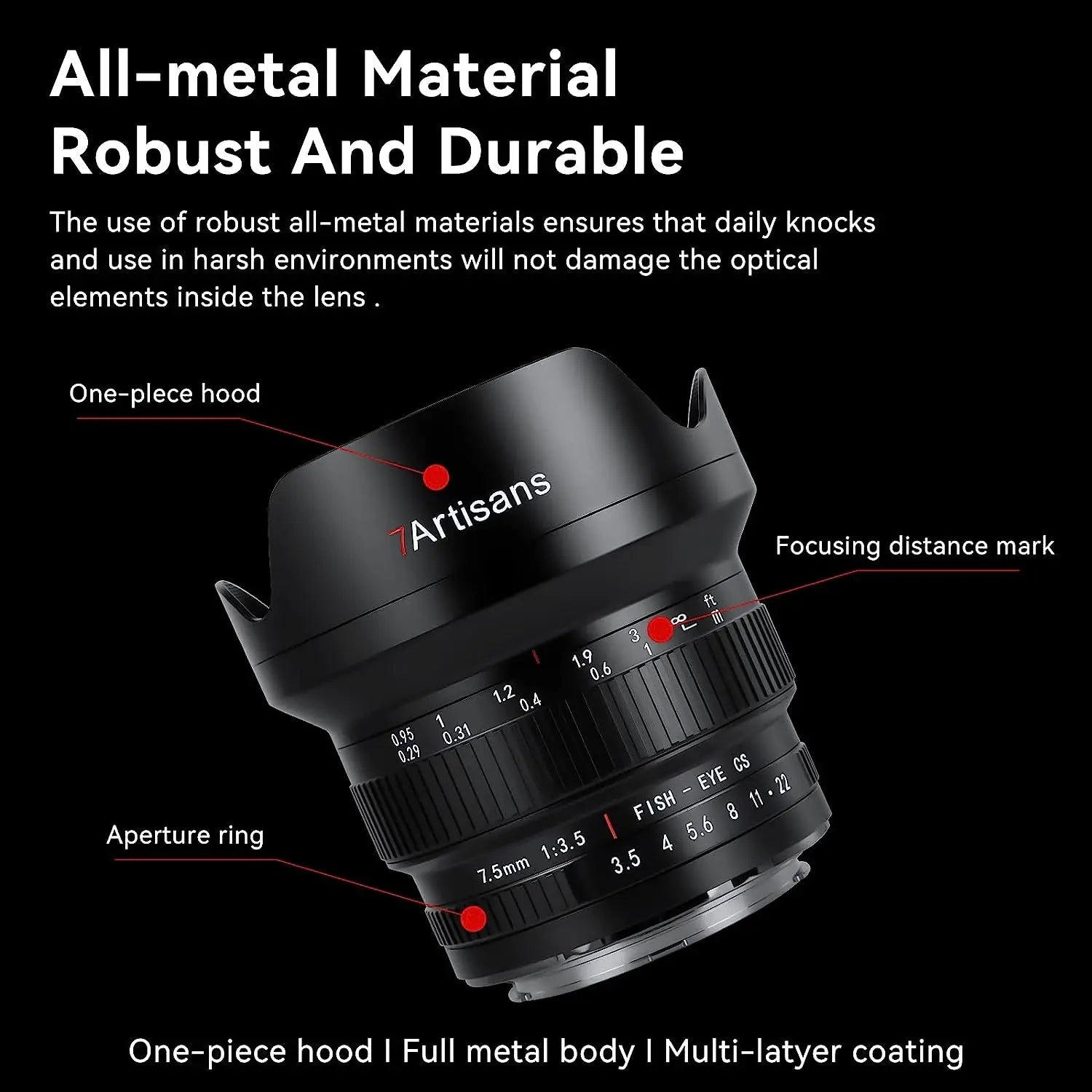 7artisans 7.5mm F3.5 Ultra HD Fisheye Manual Focus APS-C Lens for Canon EOS EF/Nikon F Mount