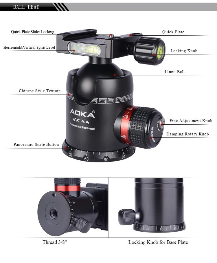 360 degree professional aluminum alloy camera tripod ball head panoramic rotary ballhead