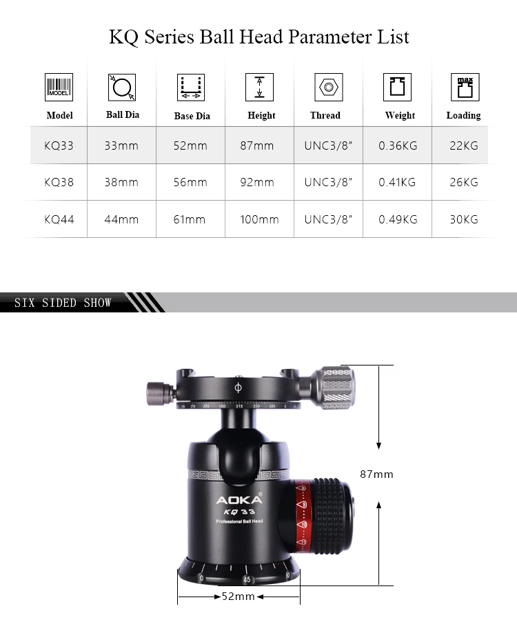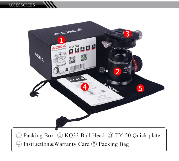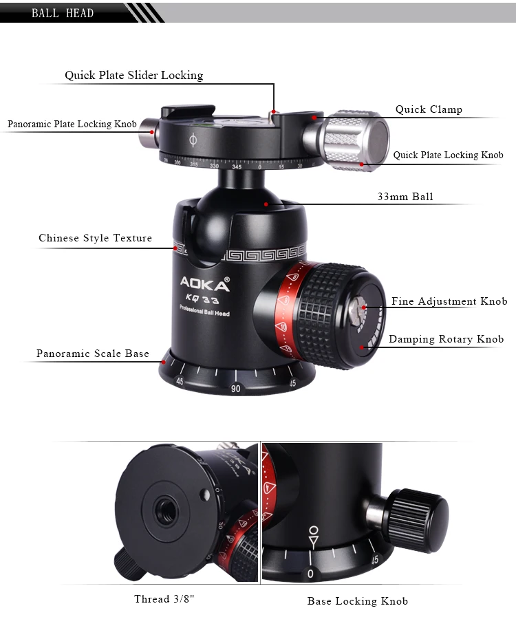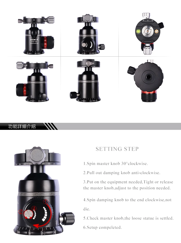 AOKA 360 degree panoramic tripod ball head ballhead for camera with quick release plate