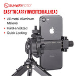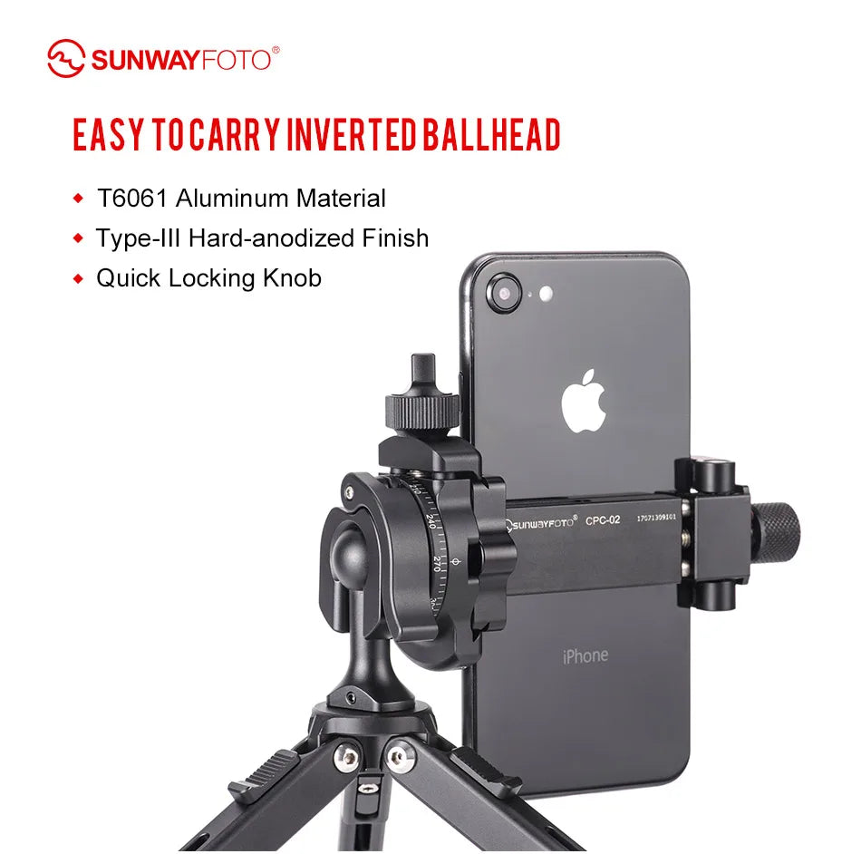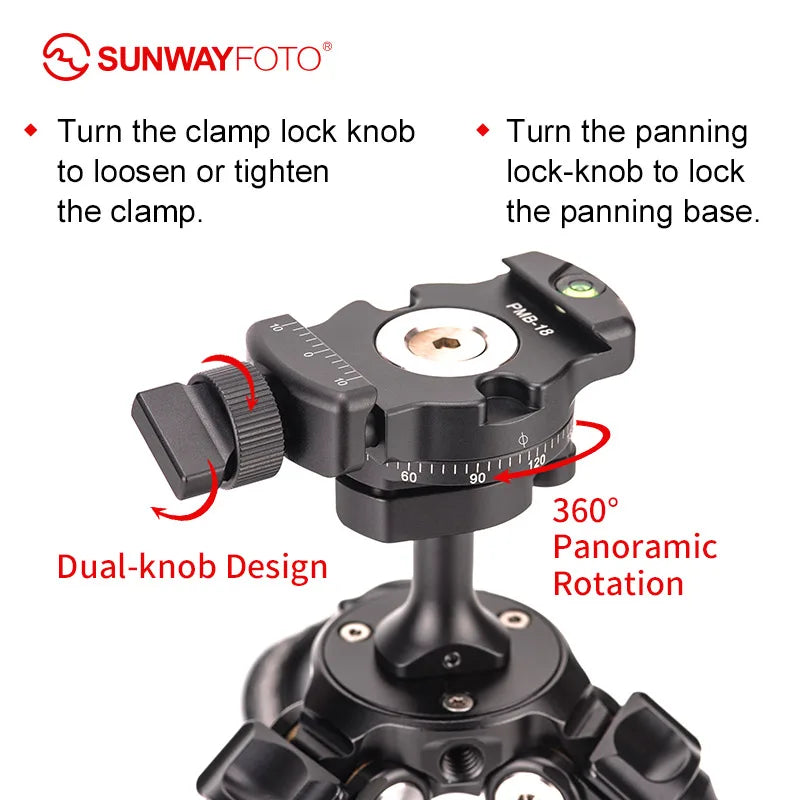 PMB-18 is one easy to carry inverted ballhead, compared with traditional ballheads, it features lighter weight and smaller size, compatible with mobile phones and mirrorless cameras,
