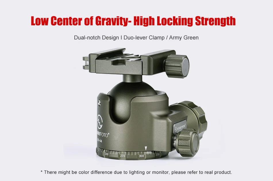 Lower gravity center compared with traditonal ballheads,which lowers the whole gravity of your shooting equipment hence ensures better stability.