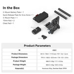 SmallRig Advanced Compact V-Mount Battery Mounting System 4063 represents a compact, lightweight, convenient, all-in-one mounting solution for V-mount battery. The kit consists of a V-mount battery plate, an Arca-type quick-release plate, a V-mount plate, 15mm rods, and a chest pad. Particularly, the baseplate can be stretched to fit mirrorless / DSLR cameras of various sizes, which is helped by tool-less installation and adjustment, quick and time-saving. Beyond any cage with a built-in Arca-type plate, it can directly support the camera and DJI RS series gimbals via the Arca Swiss quick-release plate. The V-mount battery plate, featuring 1/4"-20 threaded holes and a V-mount plate, provides more power supply solutions by attaching NP-F Battery Adapter Plate Professional Edition 3168 and Holder for Portable Power Banks BUB2336. Switching between handheld shot and tripod shot is also easier, thanks to the bottom Arca-type plate. The 90-degree rotatable V-mount battery plate leaves enough room for flip screen, with pivot dampening preventing your device from falling. It can be folded down for increased compactness and portability. Besides, at the end of the 15mm rods, there is a chest pad to ensure the stability of shooting handheld.