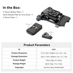 SmallRig Compact V-Mount Battery Mounting System 4064represents a compact, lightweight, convenient, all-in-one mounting solution for V-mount battery. The kit consists of a V-mount battery plate, an Arca-type quick-release plate, and a V-mount plate. Particularly, the baseplate can be stretched to fit mirrorless / DSLR cameras of various sizes, which is helped by tool-less installation and adjustment, quick and time-saving. Beyond any cage with a built-in Arca-type plate, it can directly support the camera and DJI RS series gimbals via the Arca Swiss quick-release plate. The V-mount battery plate, featuring 1/4"-20 threaded holes and a V-mount plate, provides more power supply solutions by attaching NP-F Battery Adapter Plate Professional Edition 3168 or Holder for Portable Power Banks BUB2336. Switching between handheld shot and tripod shot is also easier, thanks to the bottom Arca-type plate. The 90-degree rotatable V-mount battery plate leaves enough room for flip screen, with pivot dampening preventing your device from falling. It can be folded down for increased compactness and portability.