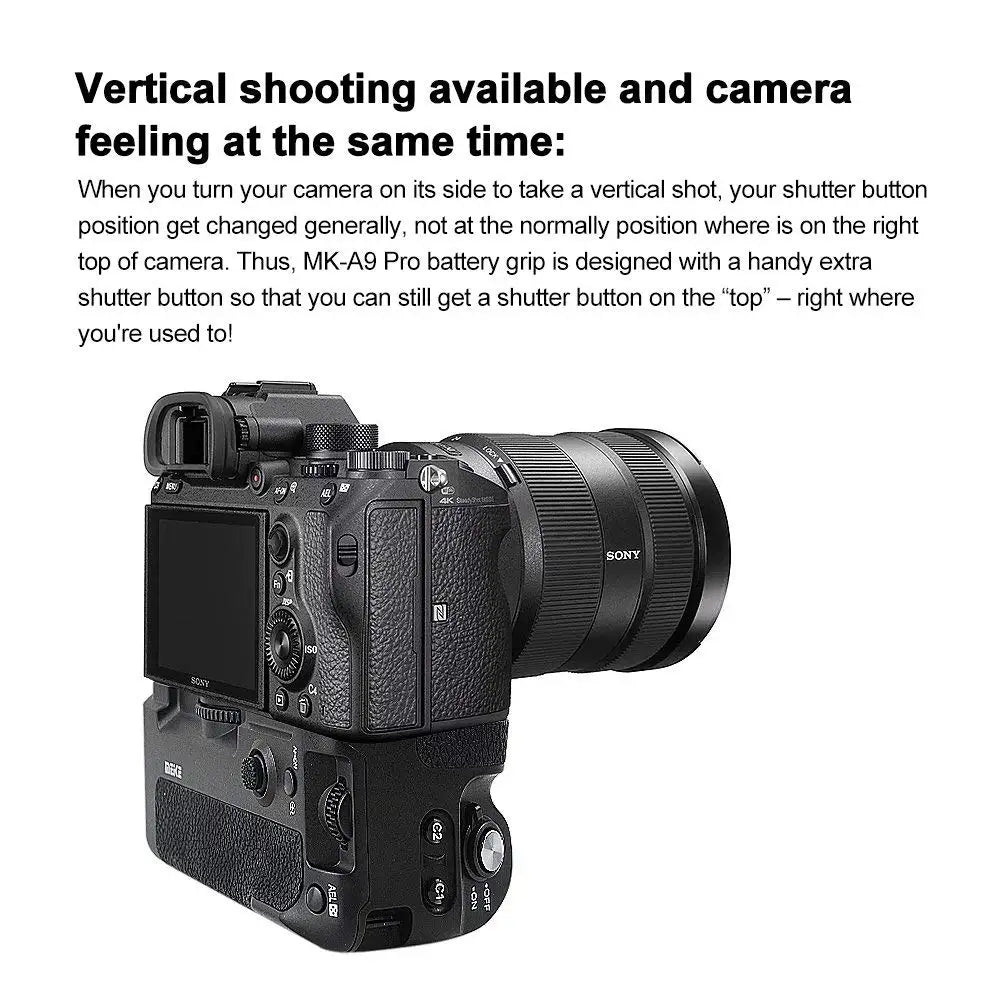 MEKE Meike The New MK A9 Pro Battery Grip Built-in 2.4GHz Remote Controller Up to 100M to Control shooting Vertical-shooting Function for Sony A9 A7RIII A7III Camera