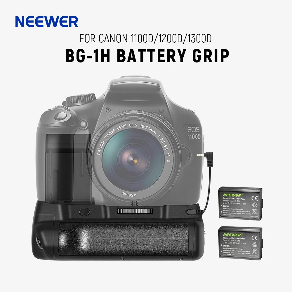 Neewer Vertical Battery Grip and 2-Pack 1020mAh LP-E10 Li-ion Replacement Battery Kit for Canon EOS 1100D / 1200D / 1300D / Rebel T3 / T5 / T6