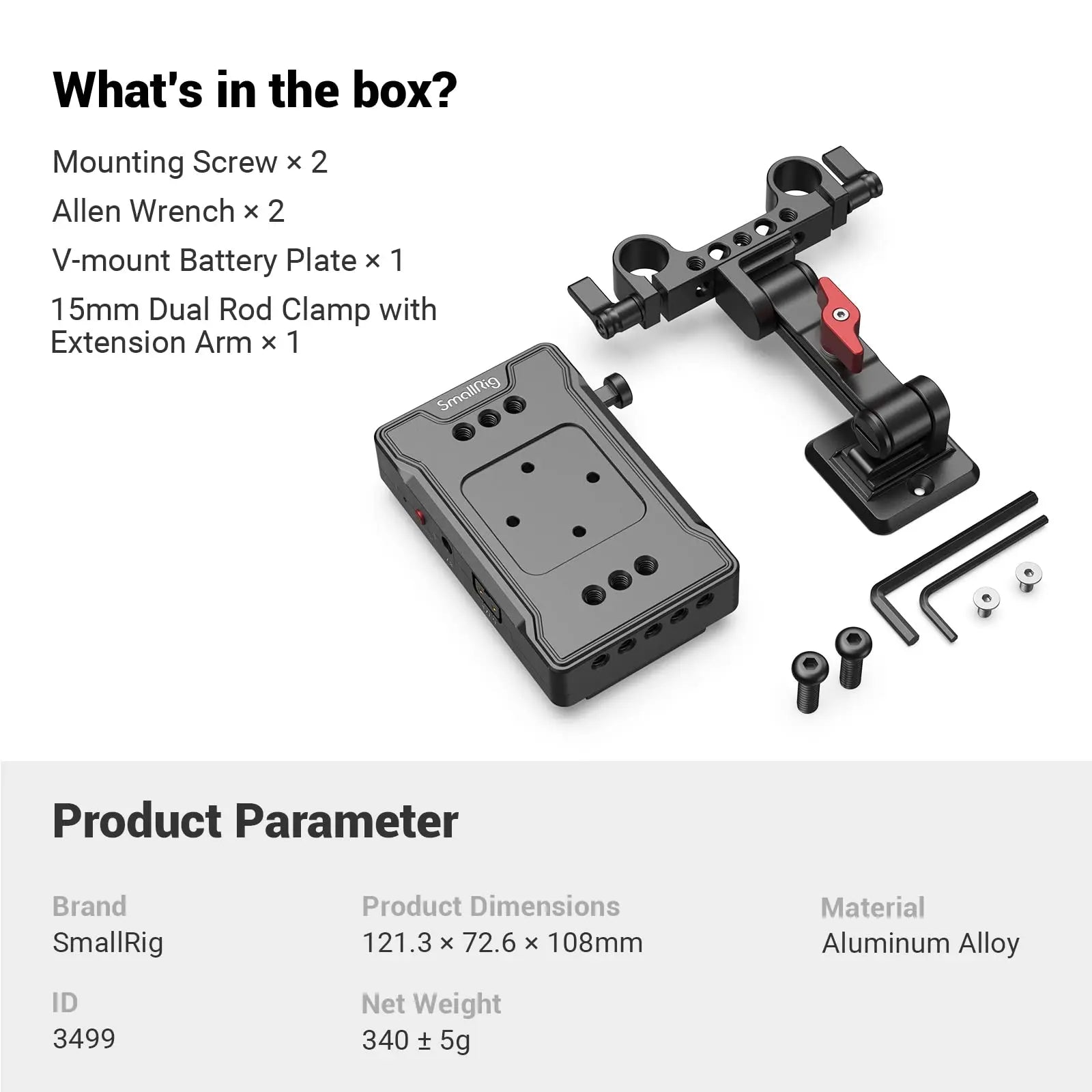 SmallRig V Mount Battery Adapter Plate (Basic Version) with Extension Arm 3499