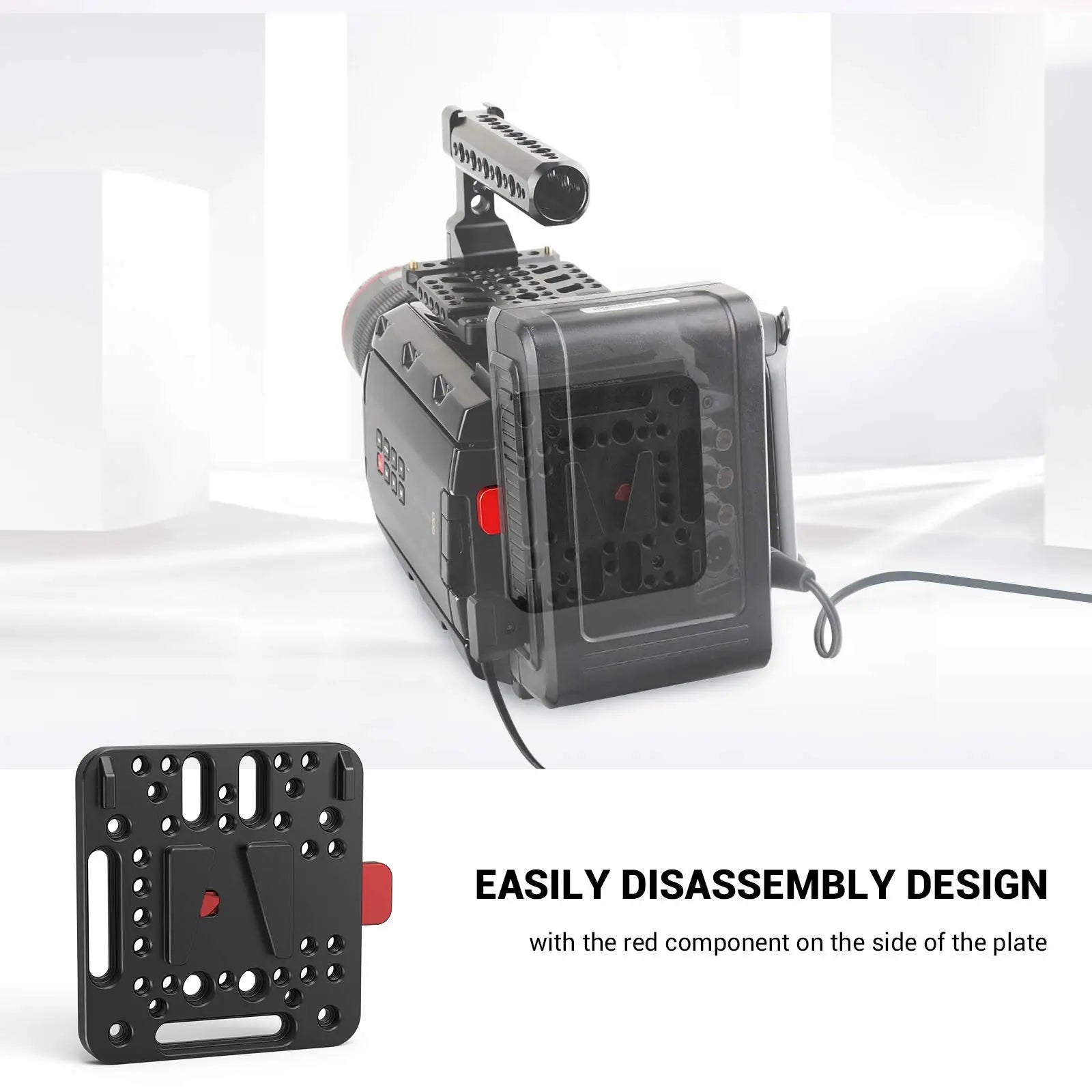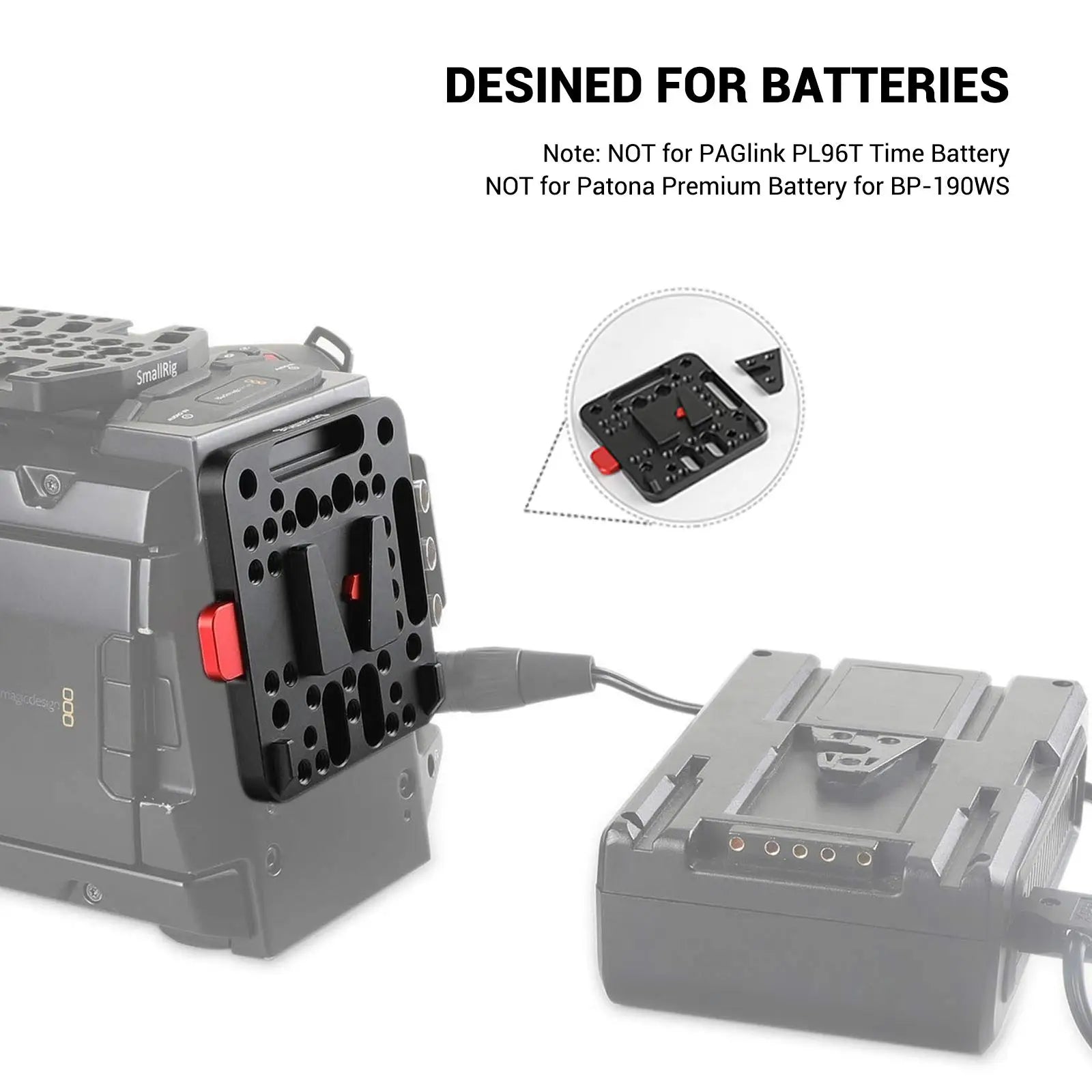 4. The integrated protruding portions prevent it from twisting when V-Mount battery attached