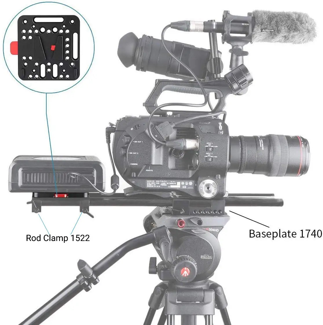 3. Used on the back of Blackmagic Ursa Mini or on the top of rod clamps