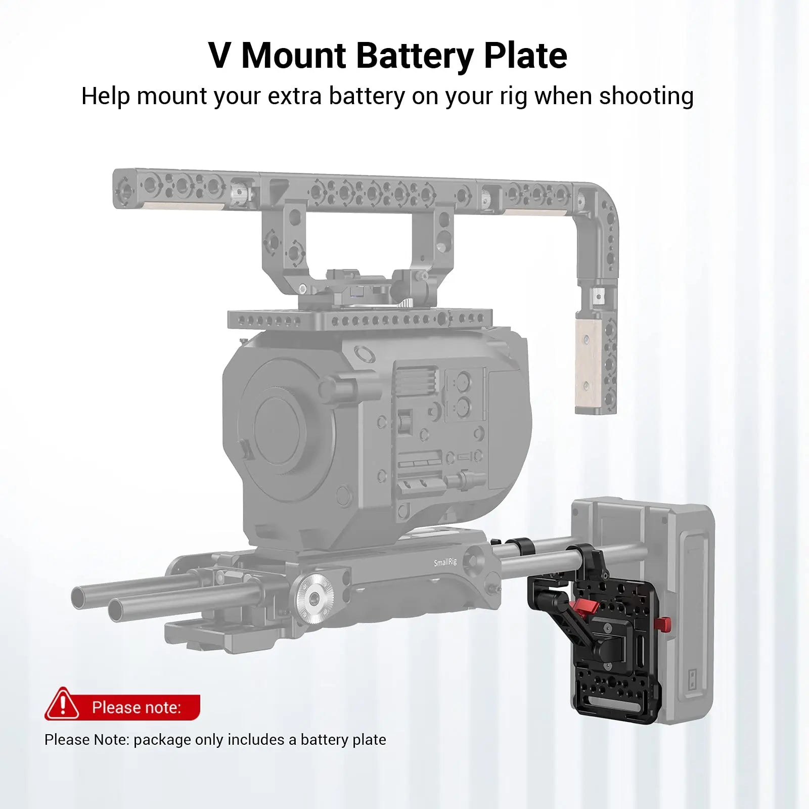 1. The plate utilizing a standard V mount fits most V mount batteries to provide greater battery life for your camera rig with your battery's power port(s).
