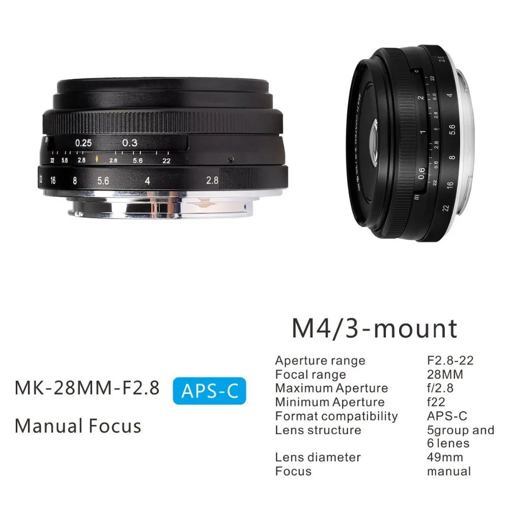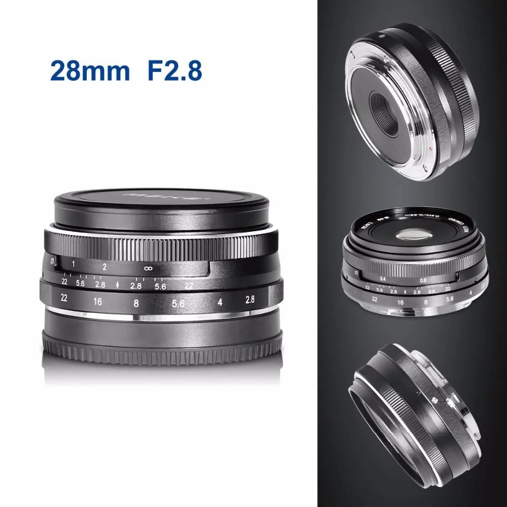 Meike 28mm f2.8 Fixed Manual Focus Lens for Olympus Panasonic M4/3/Fujifilm X/Sony E/Canon EF-M Cameras