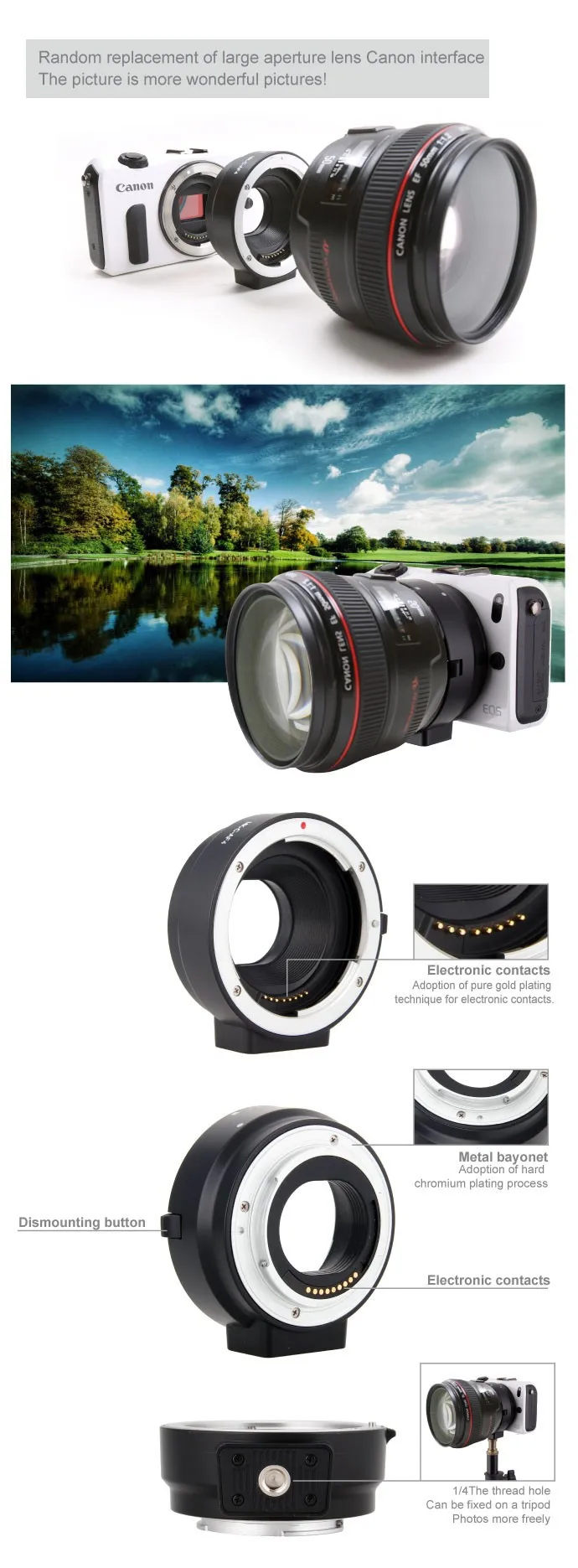 Suitable for: Canon micro single EOS M and Canon EF/EF-S lens adapter.