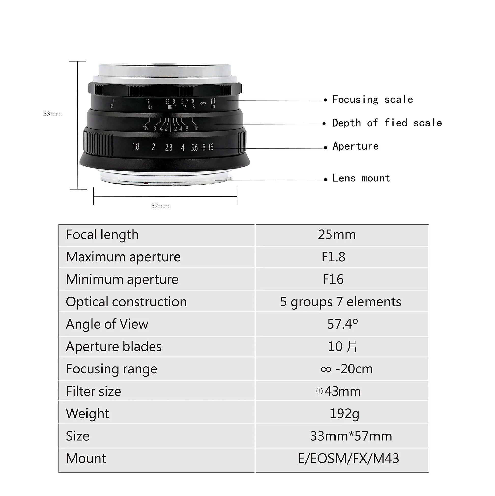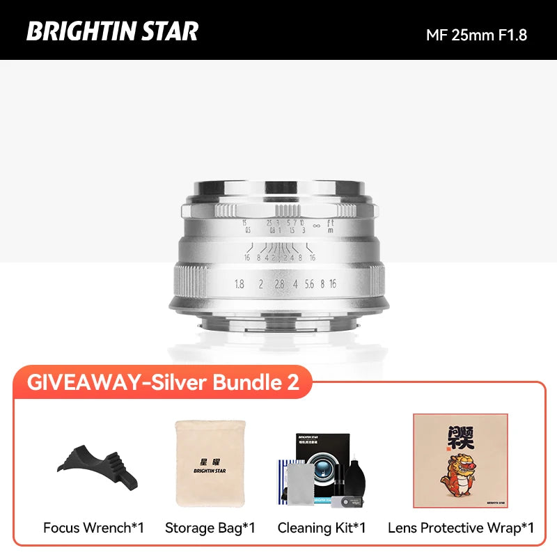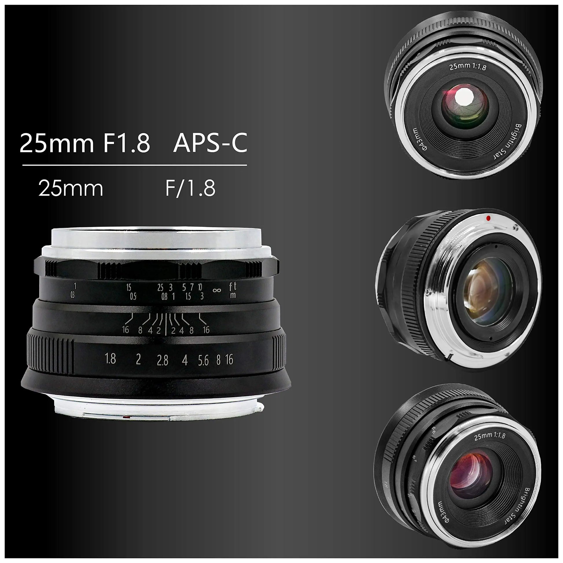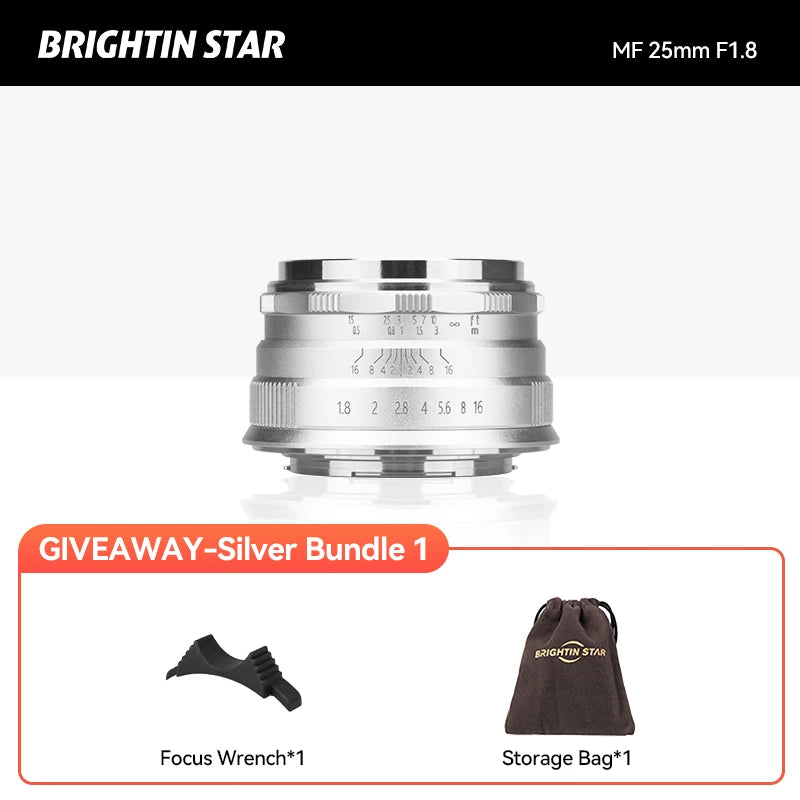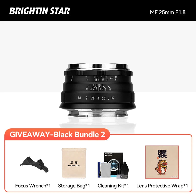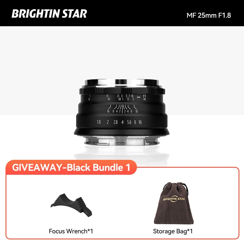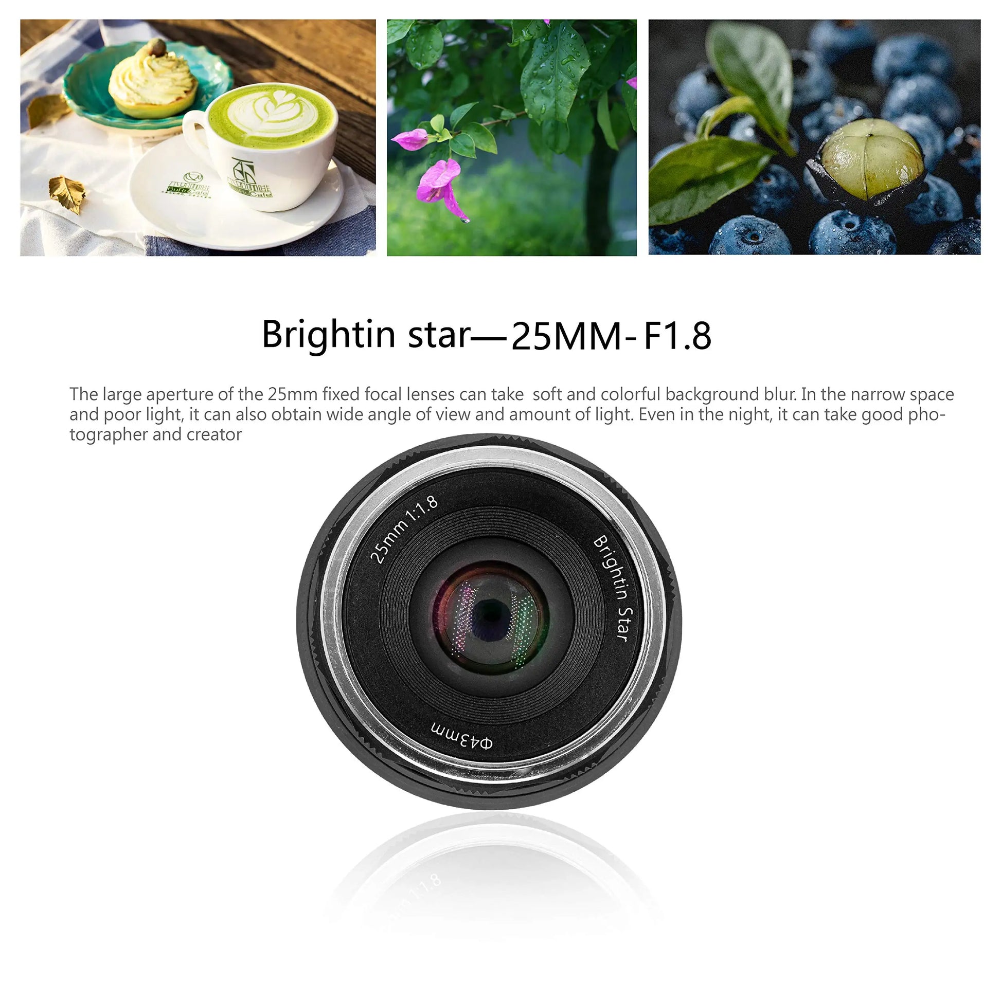 Brightin Star 25mm F1.8 Wide Angle APS-C MF Prime Mirrorless Camera Lens for Sony E/ CanonEF-M Nikon Z Fujifilm M43