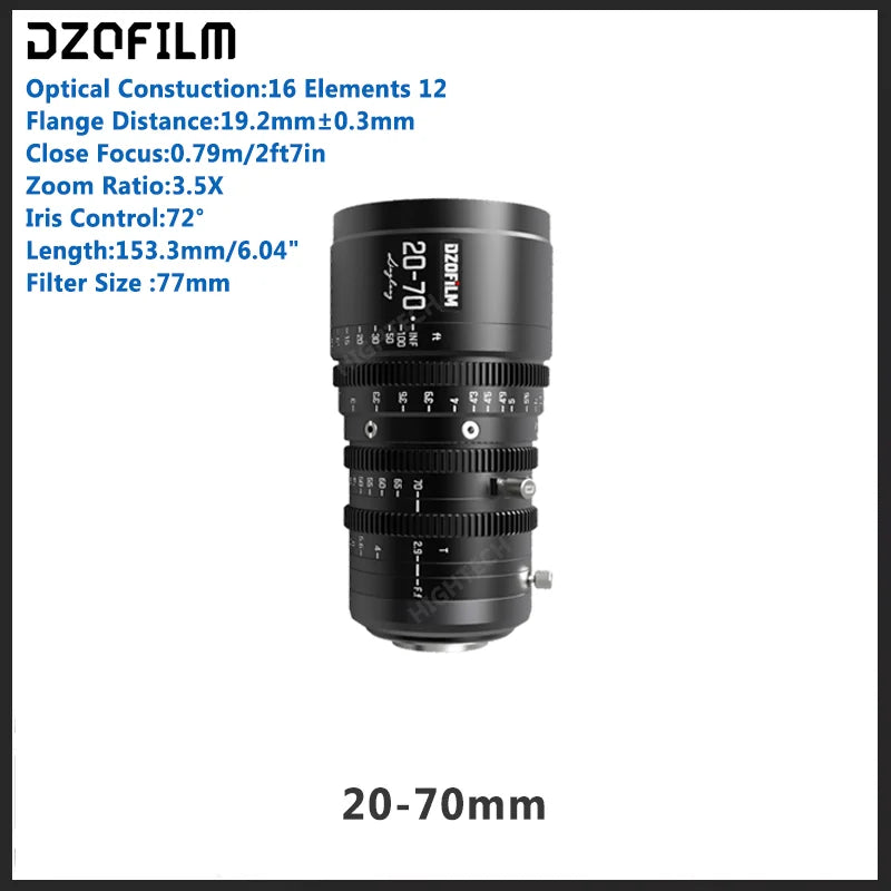 DZOFilm DZO 20-70mm T2.9 MFT Parfocal Cine LensSpecs