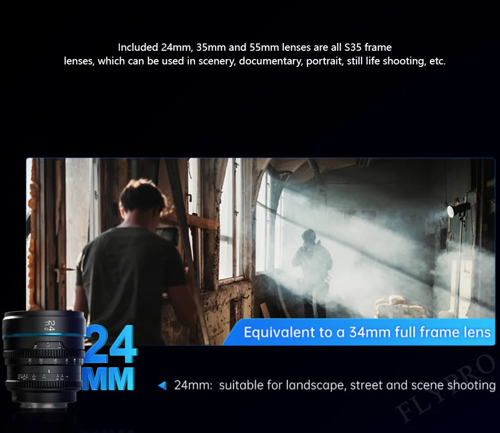 Night Walker 24mm - SIRUI Night Walker Series cine lenses come in S35 coverage. The Night Walker 24mm is equivalent to a 34mm full frame lens, suitable for landscape, street and scene filming. SIRUI Night Walker is available in classic black and fashionable metal gray. Both choices are premium and aesthetic in the appearance.