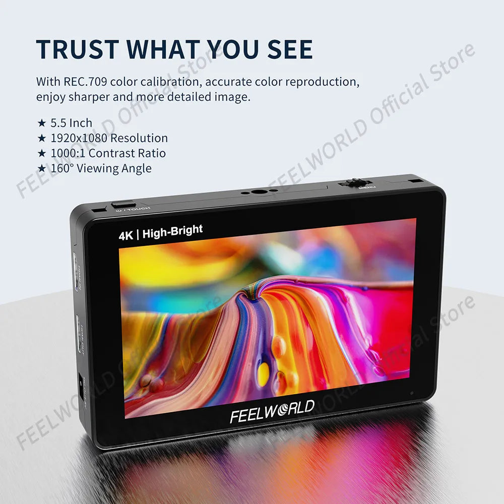 FEELWORLD F6 PLUSX is a high brightness 1600nit 5.5 inch HDMI monitor that’s perfect for vloggers, creatives and photographers.Go anywhere and see everything exactly how you want it with F6 PLUSX.