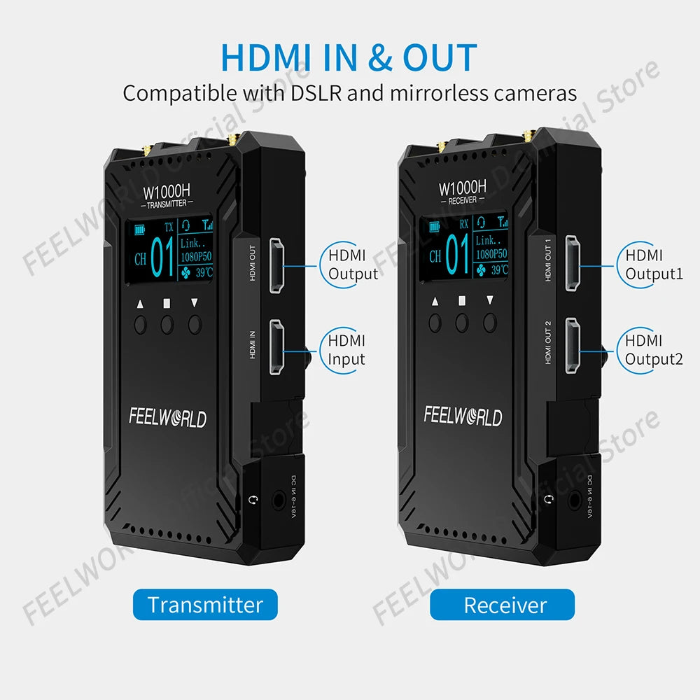 The W1000H has more than 1000ft hassle-free and reliable range for wireless video and audio transmission; 0.08S achievable latency for real-time monitoring that enables.