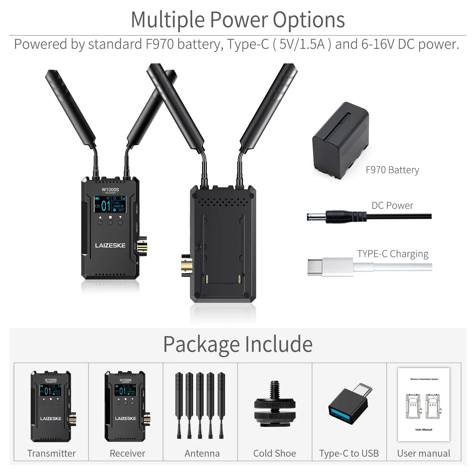 The W1000S has more than 1000ft hassle-free and reliable range for wireless video and audio transmission; 0.08S achievable latency for real-time monitoring that enables.