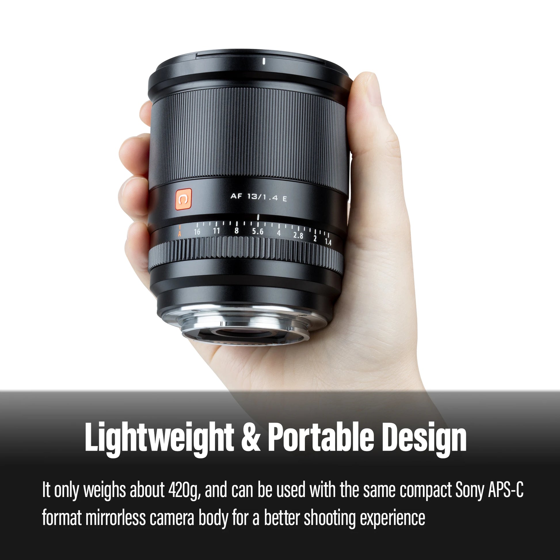 The VILTROX AF 13mm F1.4 lens is compact but solid, with a size of Φ74mm×90mm and a weight of about 420g (Z-mount is 455g).Lighten the load, which is convenient for users to go out and shoot with the stabilizer. Excellent auto focus accuracy and speed,easy to achieve a variety of sports video shooting. The 13mm focal length also has a natural advantage in shooting vlogs.