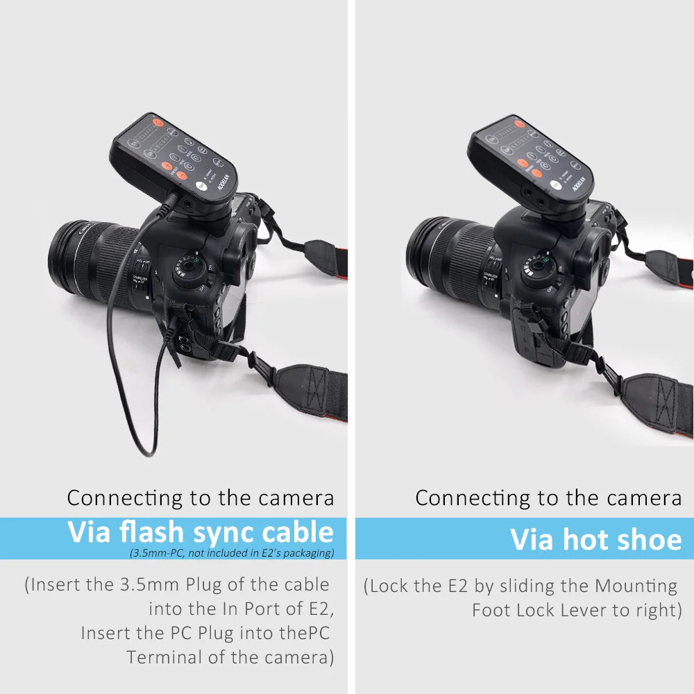 2. Standard single pin contact hot shoe mount, compatible with any camera - Canon, Nikon, Sony, Olympus, Panasonic, Fujifilm, Pentax, Samsung - that has a hot shoe.