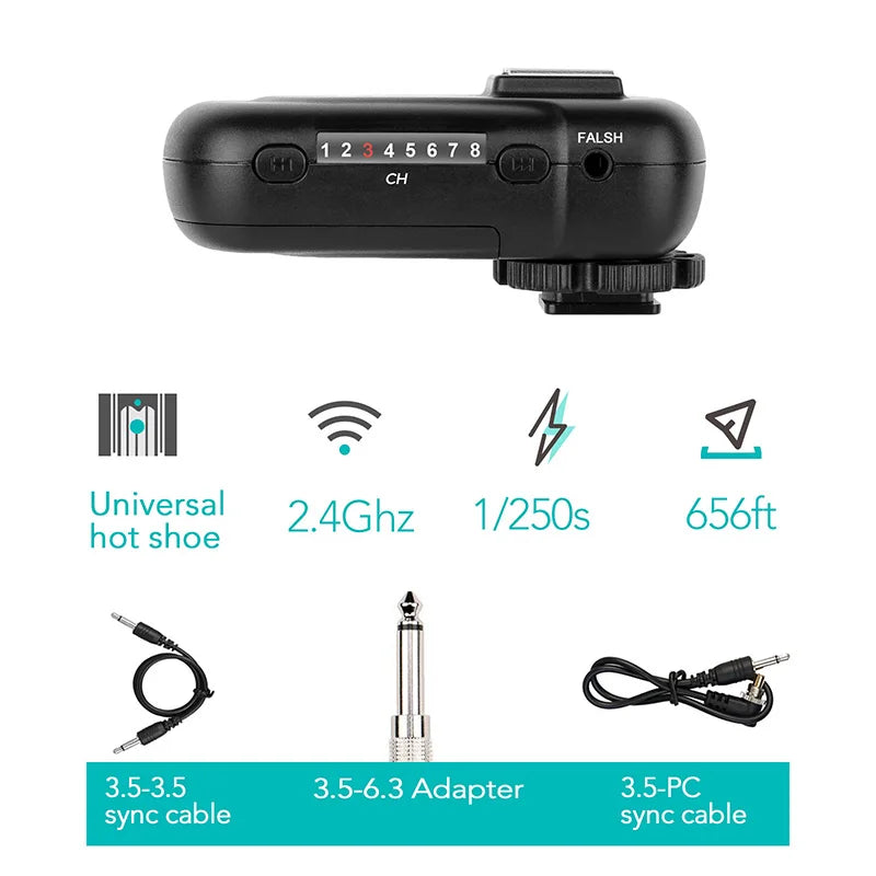 Fast maximum sync speed of 1/250s, eight channels and all channels