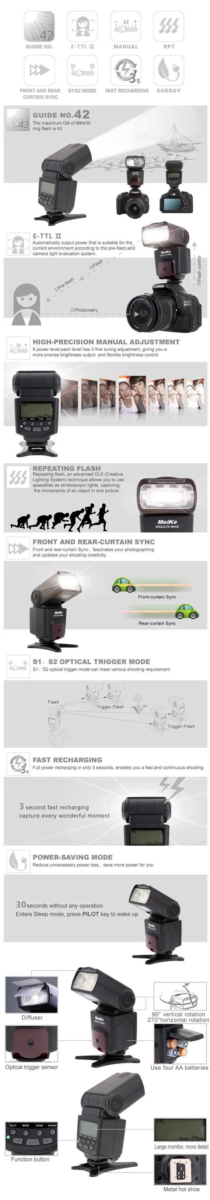 Meike MK430 TTL LCD Flash Speedlite for Canon 60D 70D 77D 80D 450D 550D 600D 1100D T7i T6i T6S T6 T5i  T5 T4i T3i T2i SL2