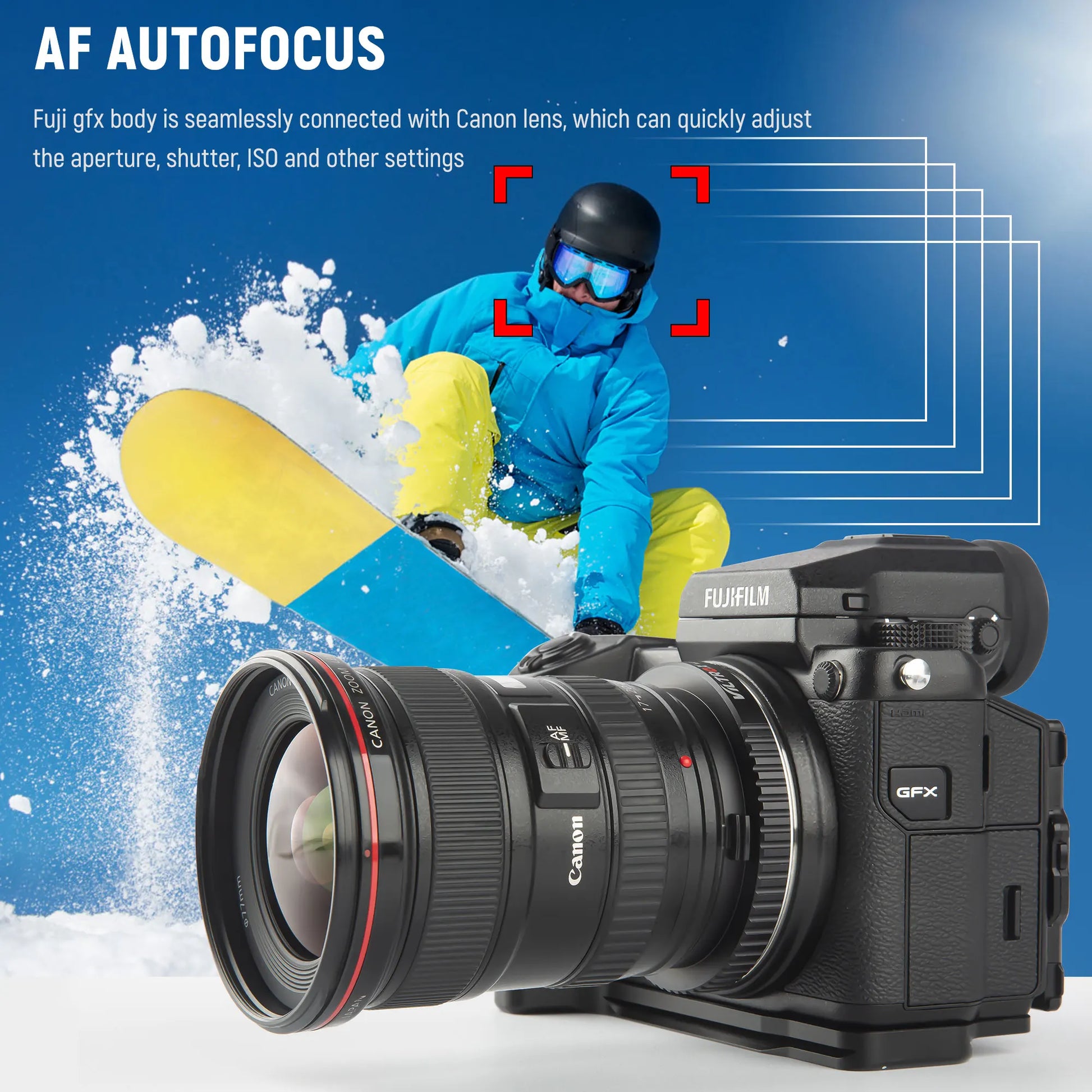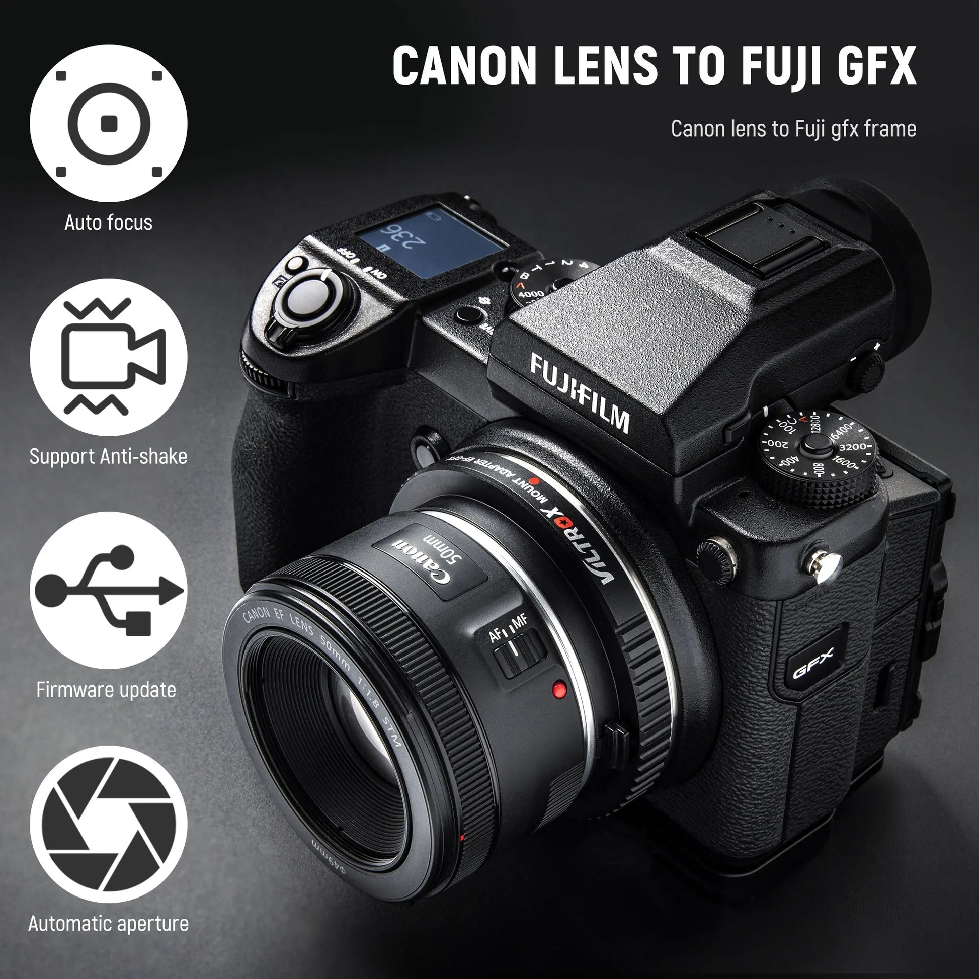 Viltrox EF-GFX Mount Adapter allows Canon EF lenses to be mounted perfectly on Fuji GFX-mount med-format cameras.