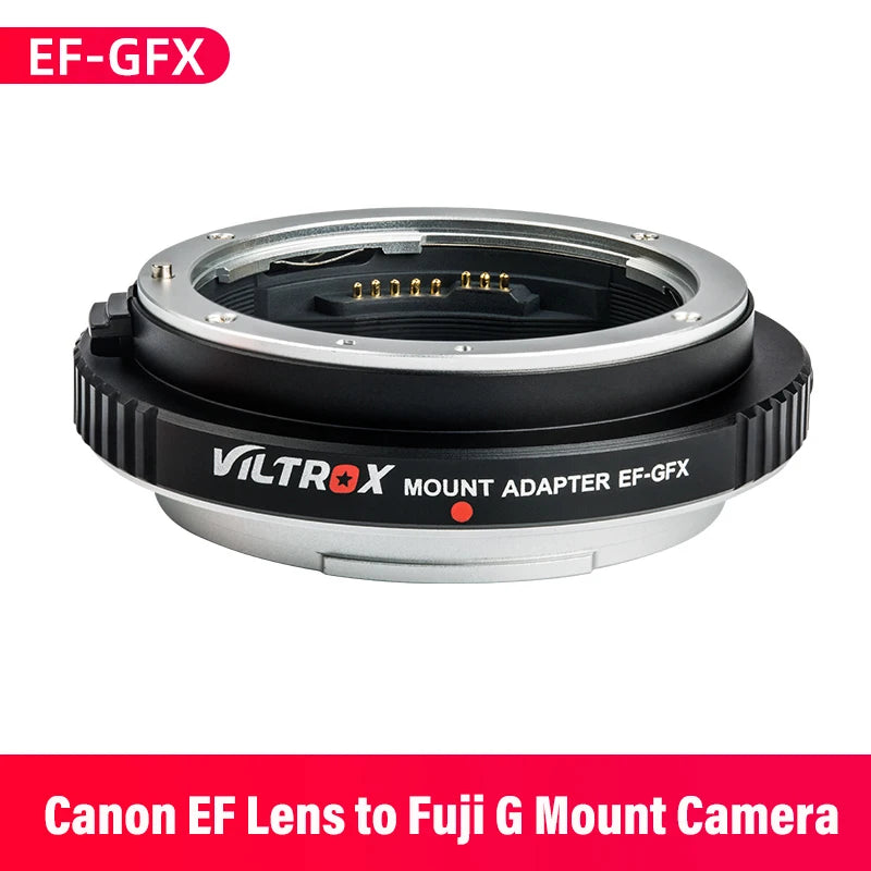 Viltrox EF-GFX Mount Adapter allows Canon EF lenses to be mounted perfectly on Fuji GFX-mount med-format cameras.
