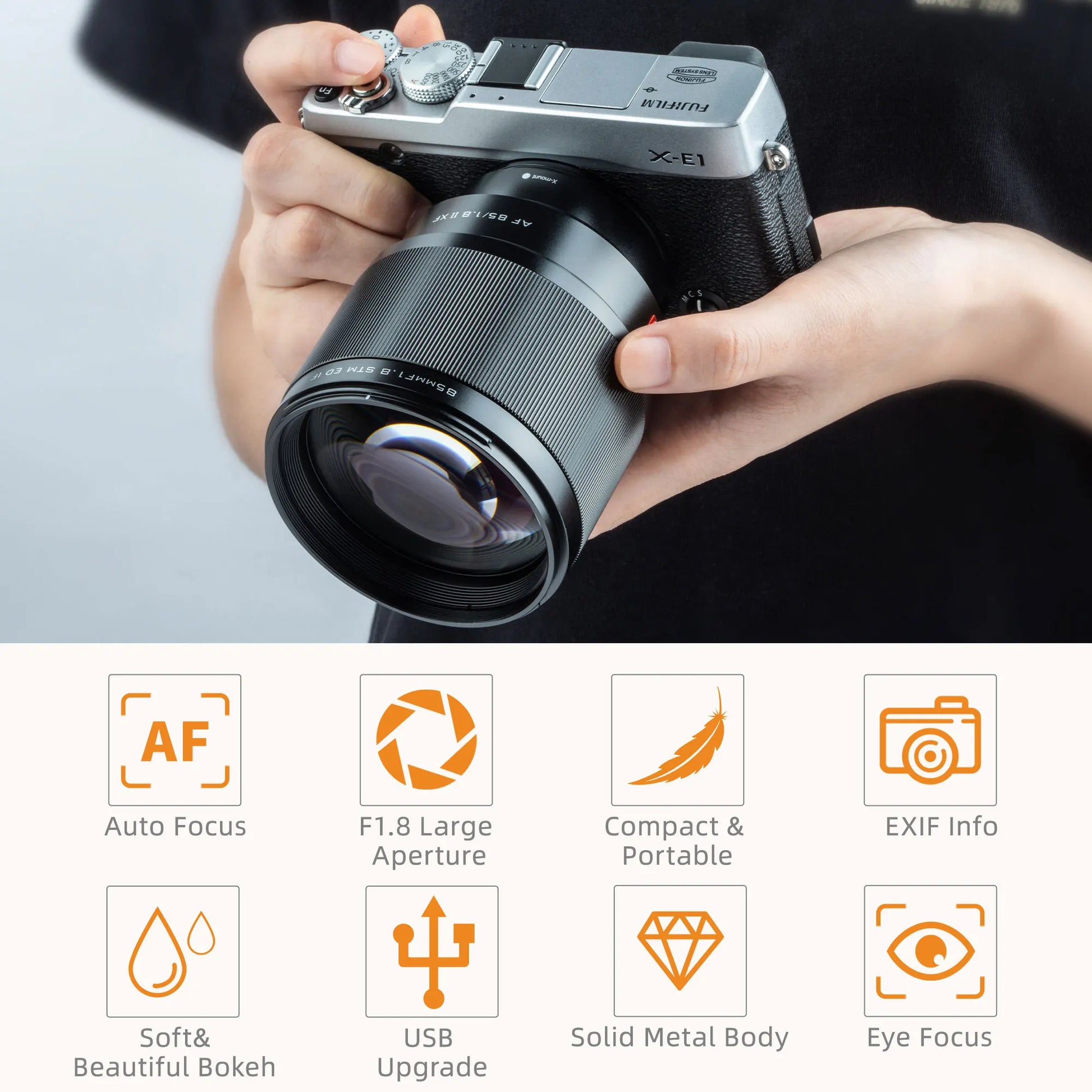 AF 85 / 1.8 II XF auto focus prime lens with large aperture designed for Fuji-X mount.