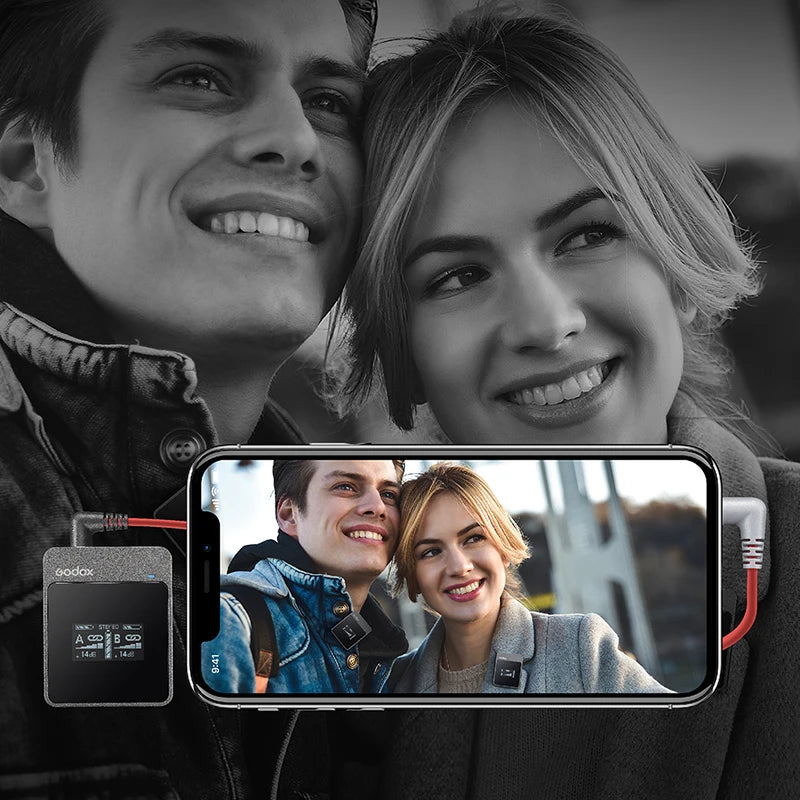 The Godox MoveLink opens a new door for all the content creators. Handling well both in short and longrange audio transmission, distance won't restrict youridea anymore. Lightweight to add no extra burden,compact enough to be unnoticeable and easy-to-operate to asks for no professional skills, the 2.4GHzwireless microphone system is powerful to captureevery precious moment clearly with no compromiseon user experience. ldeal for vlogger, YouTuber,speakers, interviewer, filmmaker and more.