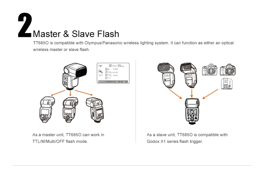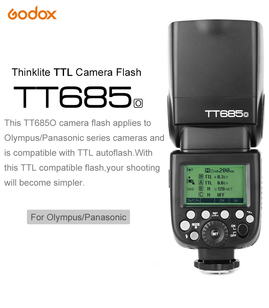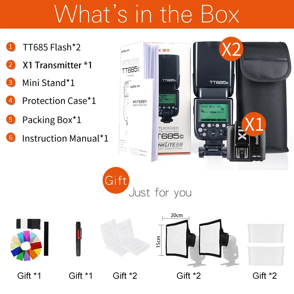 Godox 2x TT685O+X1T-O 2.4G HSS 1/8000s TTL II GN60 Camera Flash Speedlite for Lumix/Olympus + Gift Kit
