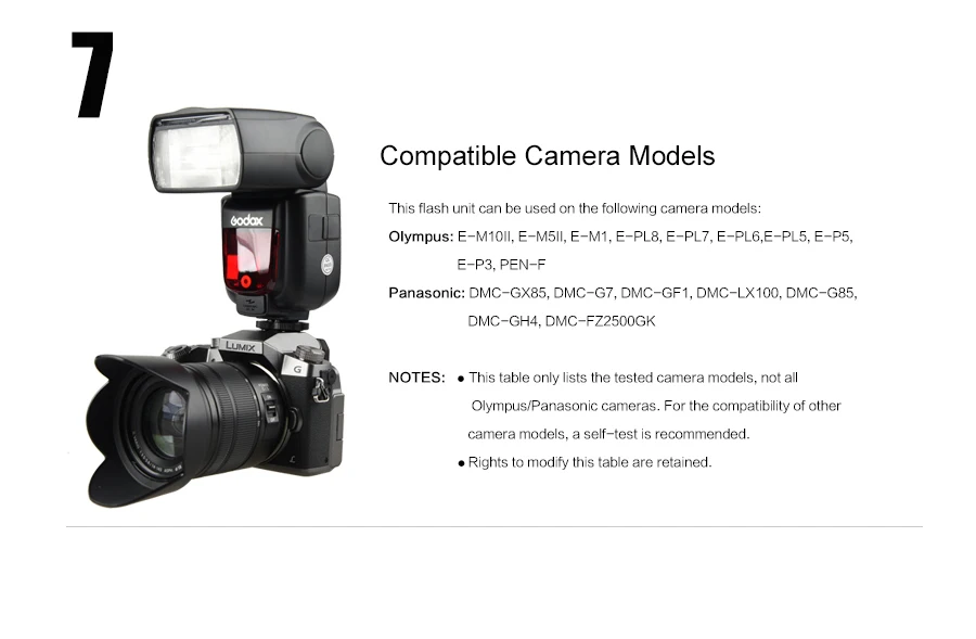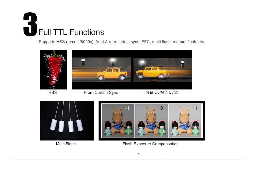 Sync Mode: High-speed sync (up to 1/8000 seconds), first-curtain sync and second-curtain sync
