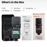 This TT600 flash adopts Godox wireless X-system, with build-in 2.4G wireless transmission, it can be used with Godox AD360II-C/AD360II-N flash, TT685C/TT685N flash, X1T-C/X1T-N trigger and other devices that with wireless control system. When used with Godox X1 TTL wireless flash trigger, it can realize remote control, high speed sync and more functions, make your shooting simpler and easier. |