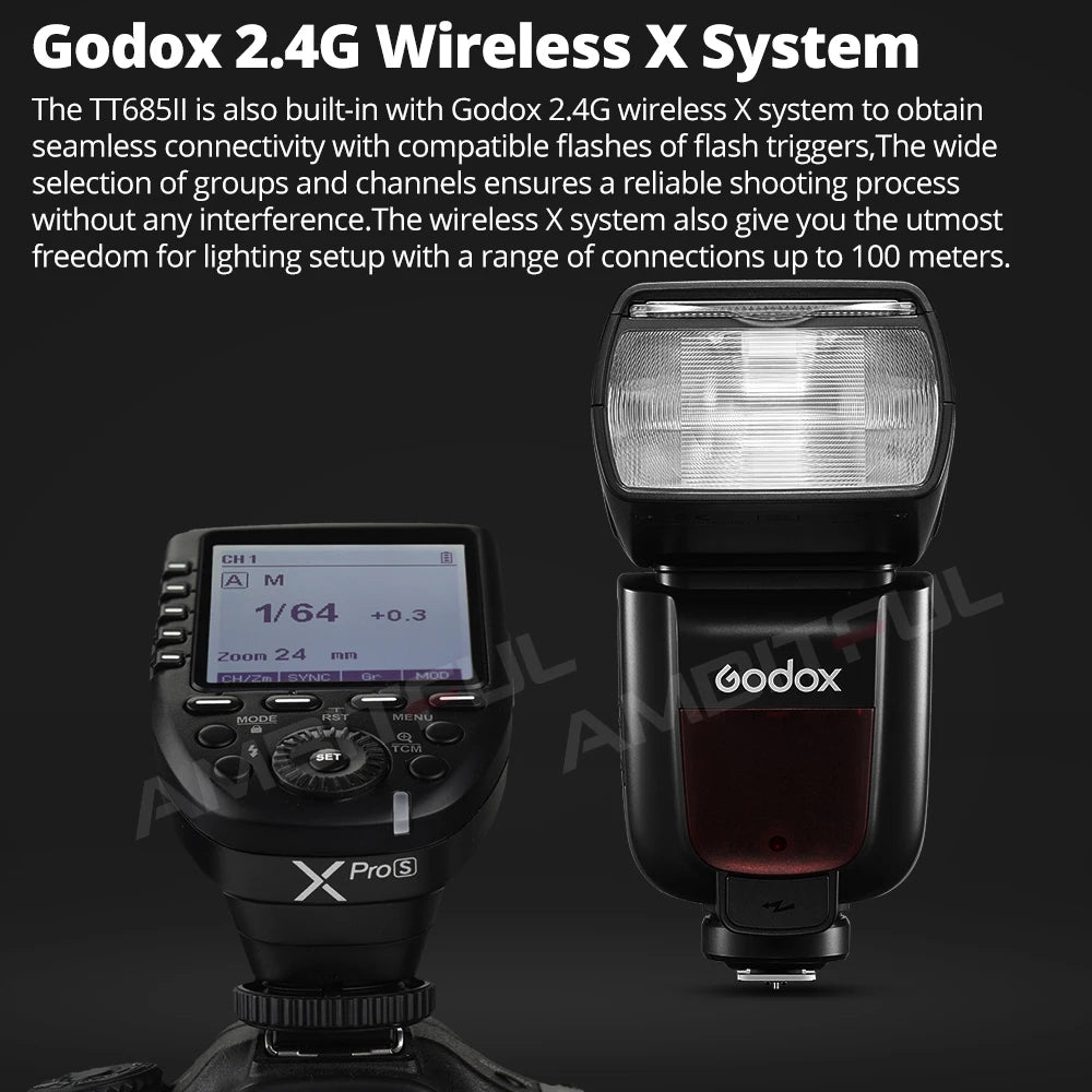 Guide number (1/1 output, 200 mm): GN ≈ 60 (mISO100)