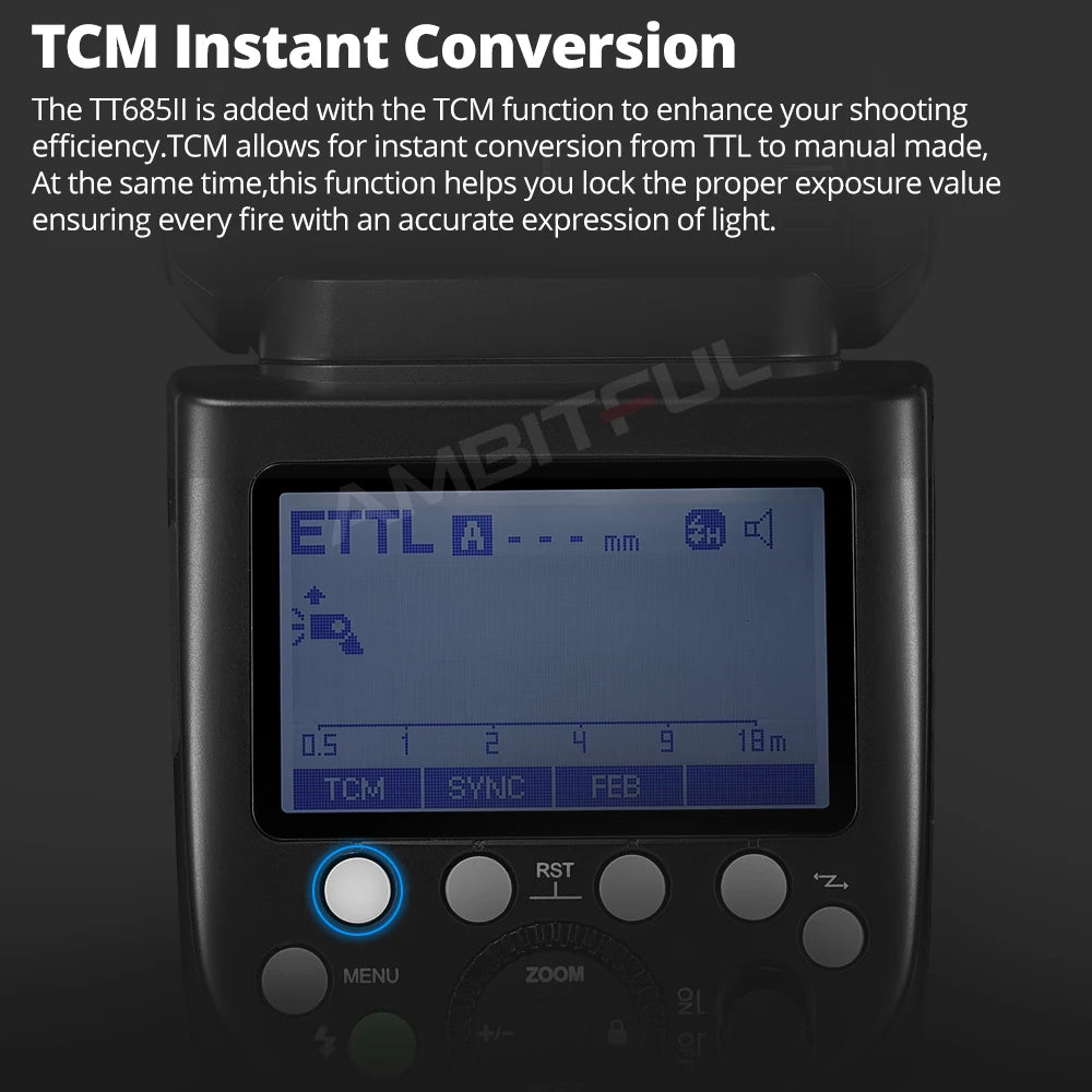 Auto Zoom: (Flash coverage is automatically set according to the focal length and image size of the lens)