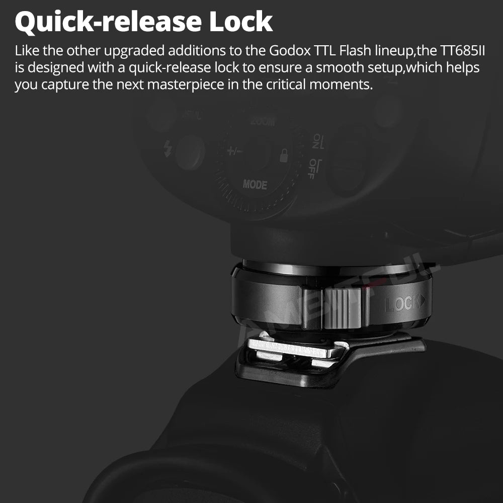 Synchronization mode: High-speed synchronization (up to 1/8000 seconds), 1st curtain synchronization, 2nd curtain synchronization