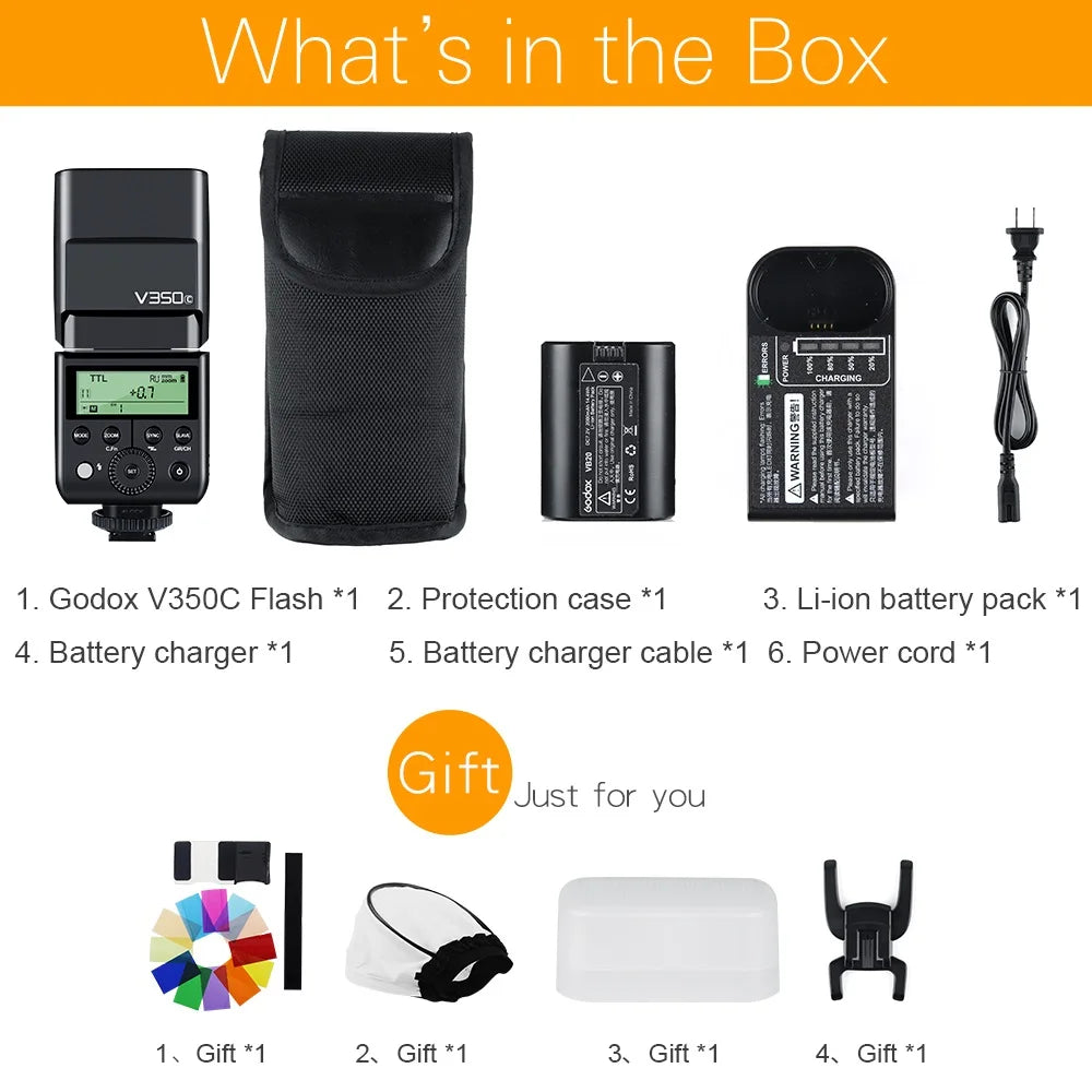V350C/V350N/V350S/V350F/V350O TTL Li-ion camera flash applies to Canon cameras and is compatible with TTL autoflash. With this flash,your shooting will become simpler