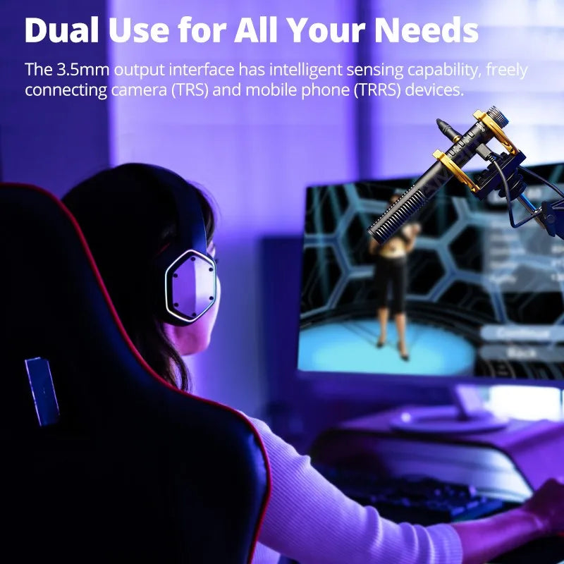 Through its 3.5mm output, the VDS-M2 microphone can work seamlessly with your camera, DSLR, computer and mobile phone.