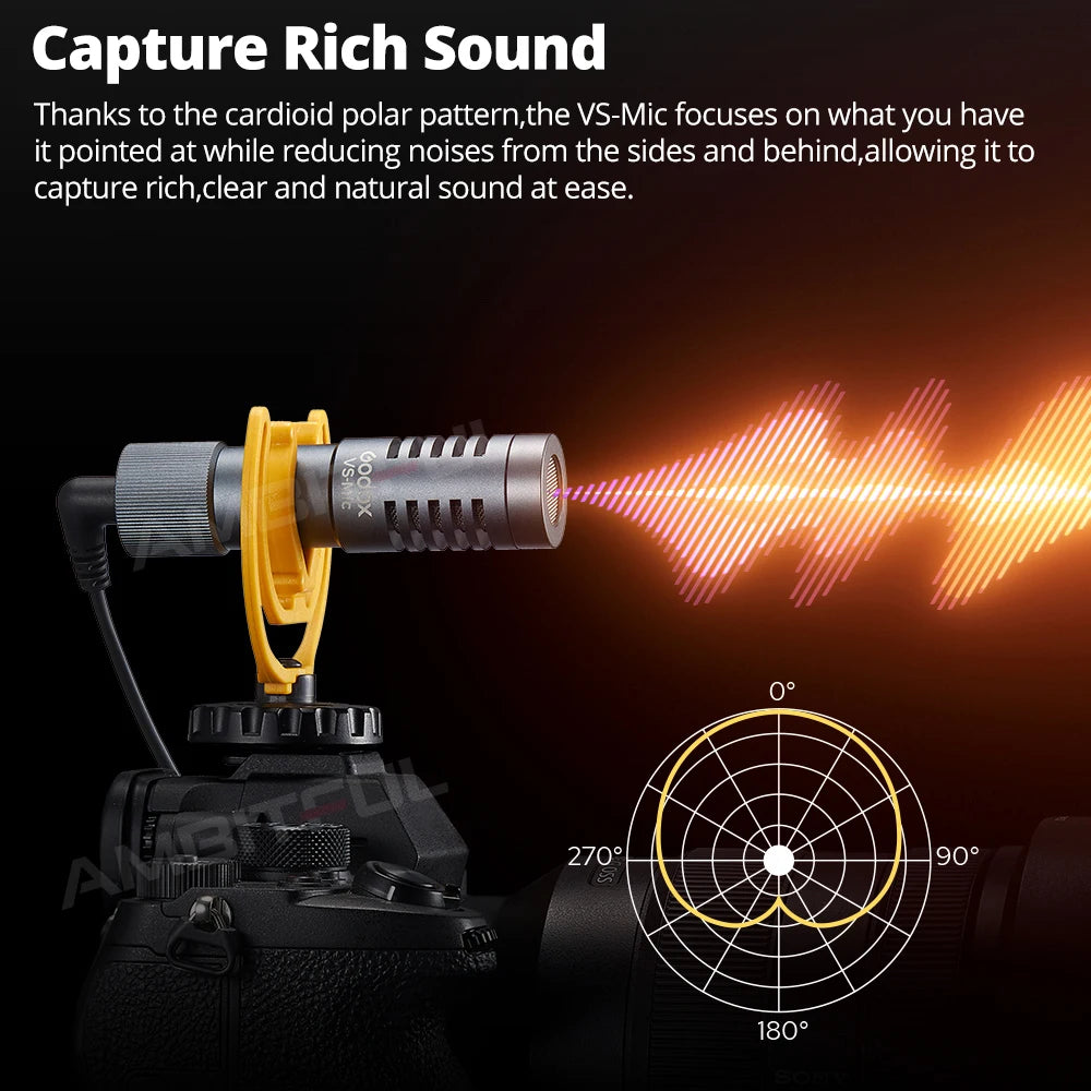 To take your creation up a notch, the sound quality of your recordingis definitely a point that you can't overlook.What you need is areliable external microphone to upgrade your audio.The VS-Micis an ultra-lightweight shotgun microphone that packs high qualityinto its compact body. It's a budget-friendly choice for vlogging,live streaming, interview, run-and-gun filmmaking, and more.
