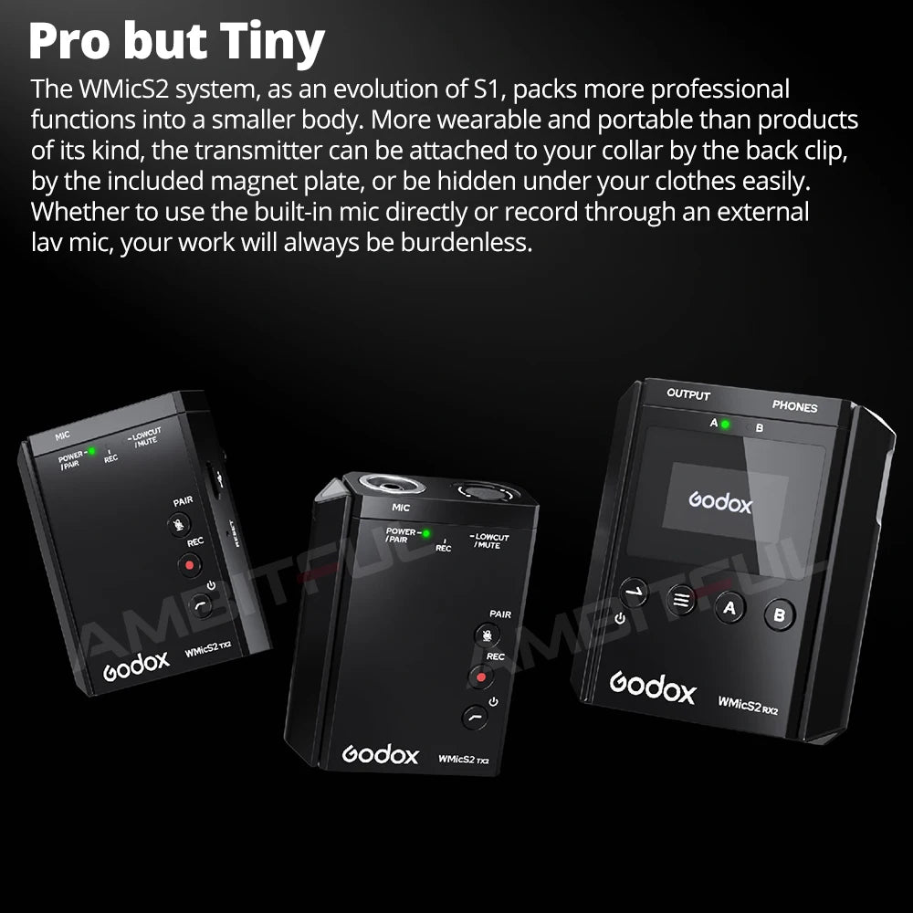 The WMicS2 system, as an evolution of S1, packs more professional functions into a smaller body. More wearable and portable than productsof its kind, the transmitter can be attached to your collar by the back clip,by the included magnet plate, or be hidden under your clothes easily.Whether to use the built-in mic directly or record through an externallav mic, your work will always be burdenless.