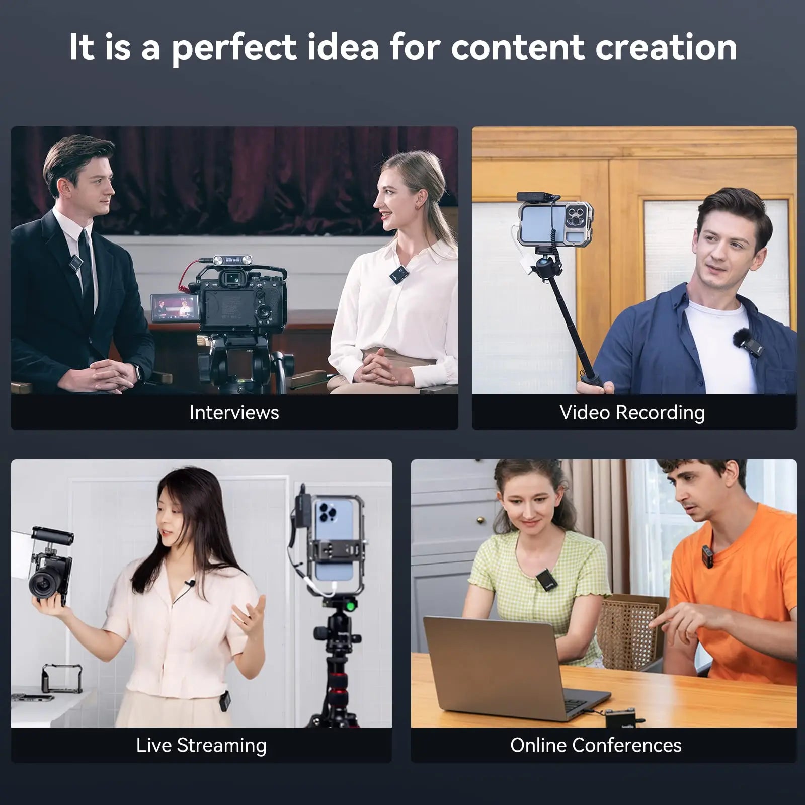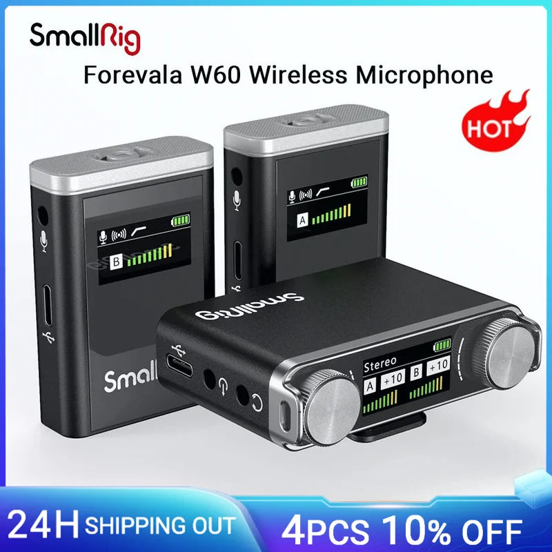 SmallRig Forevala W60 is a 2.4G wireless microphone with low-latency audio transmission and a must-have for photo and video enthusiast. Featuring industry-leading DSP for noise and sound processing, it supports such gears as smartphones, cameras, stabilizers, action cameras, computers, recorders, video cameras, recording pens, tablets to deliver professional quality recordings.