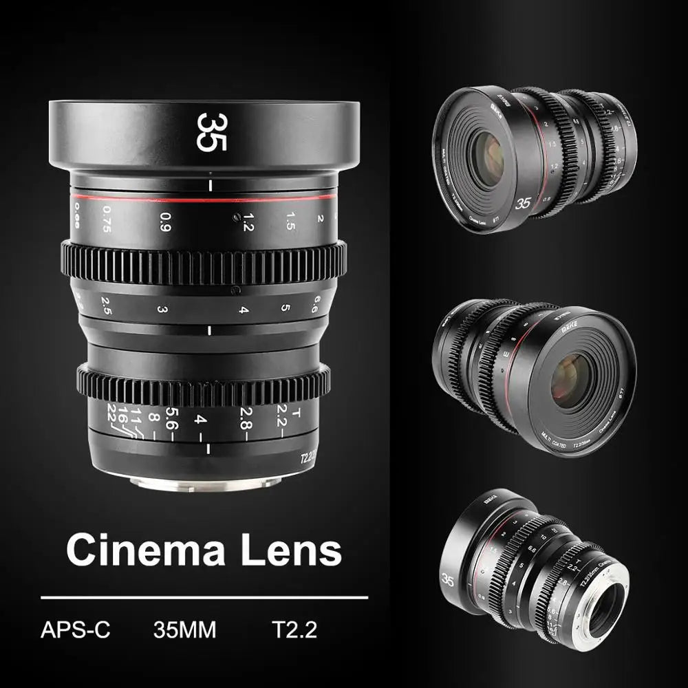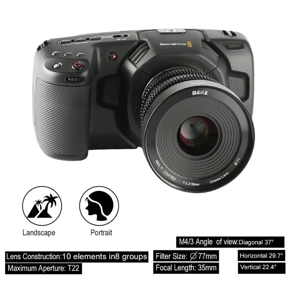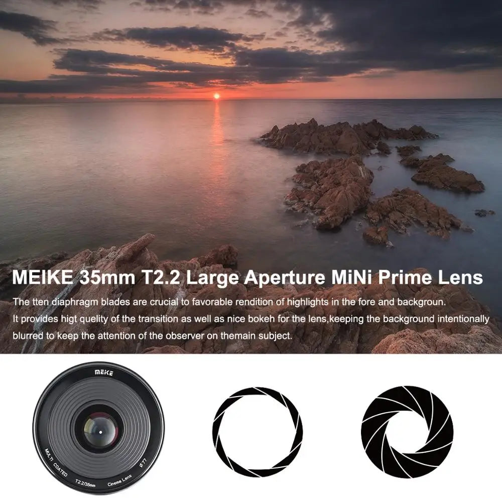 Meike 35mm T2.2 Manual Focus Aspherical Portrait Cine Lens for Fuji X / Sony E / Olympus Panasonic M43 /Canon RF mount cameras