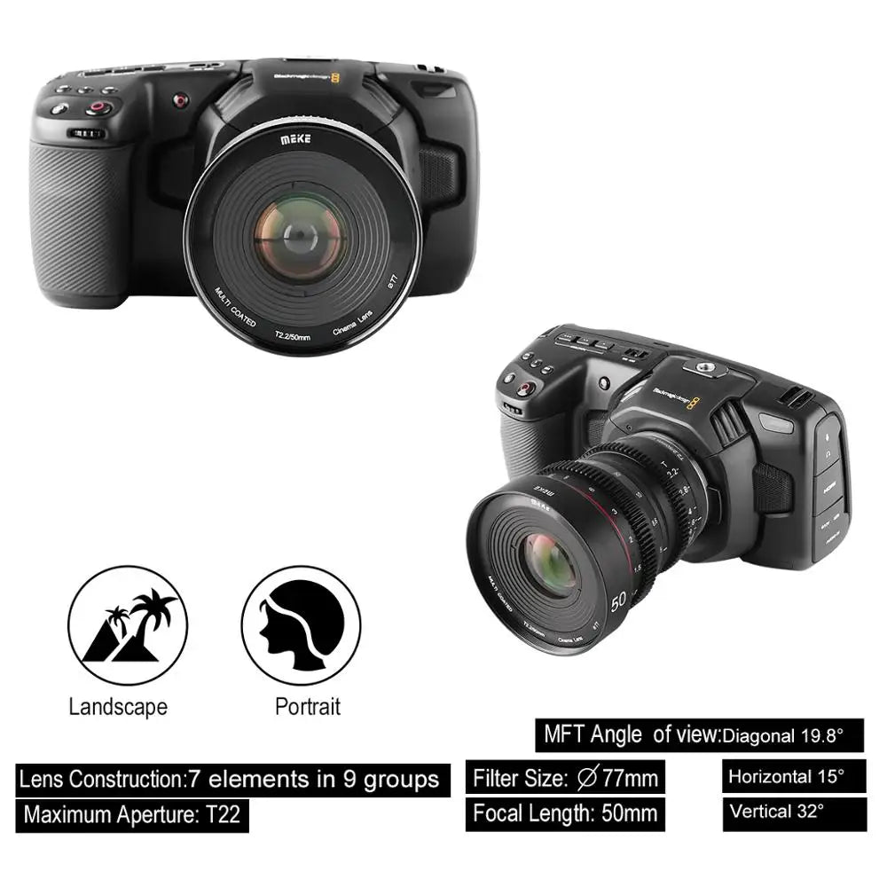 Meike 50mm T2.2 Large Aperture Manual Focus Prime Cine Lens for Olympus Panasonic M43 /Canon RF/Fuji X / Sony E Mount cameras