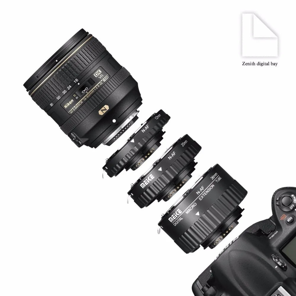Professional extension tube set, design for Nikon DSLR.