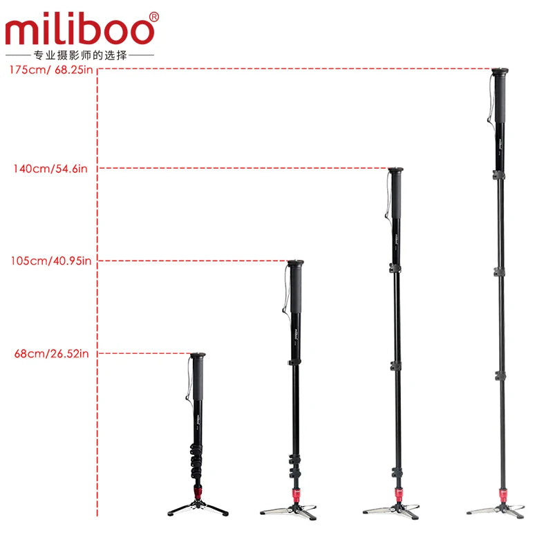 The miliboo MTT705B is a professional camera and camcorder mono-pod,it gives more flexibility and stability to use.You can distinguish our products by the width,tube diameter,load-bearing,material and so on.The mono pod without head can be used as a climbing stick if you need.