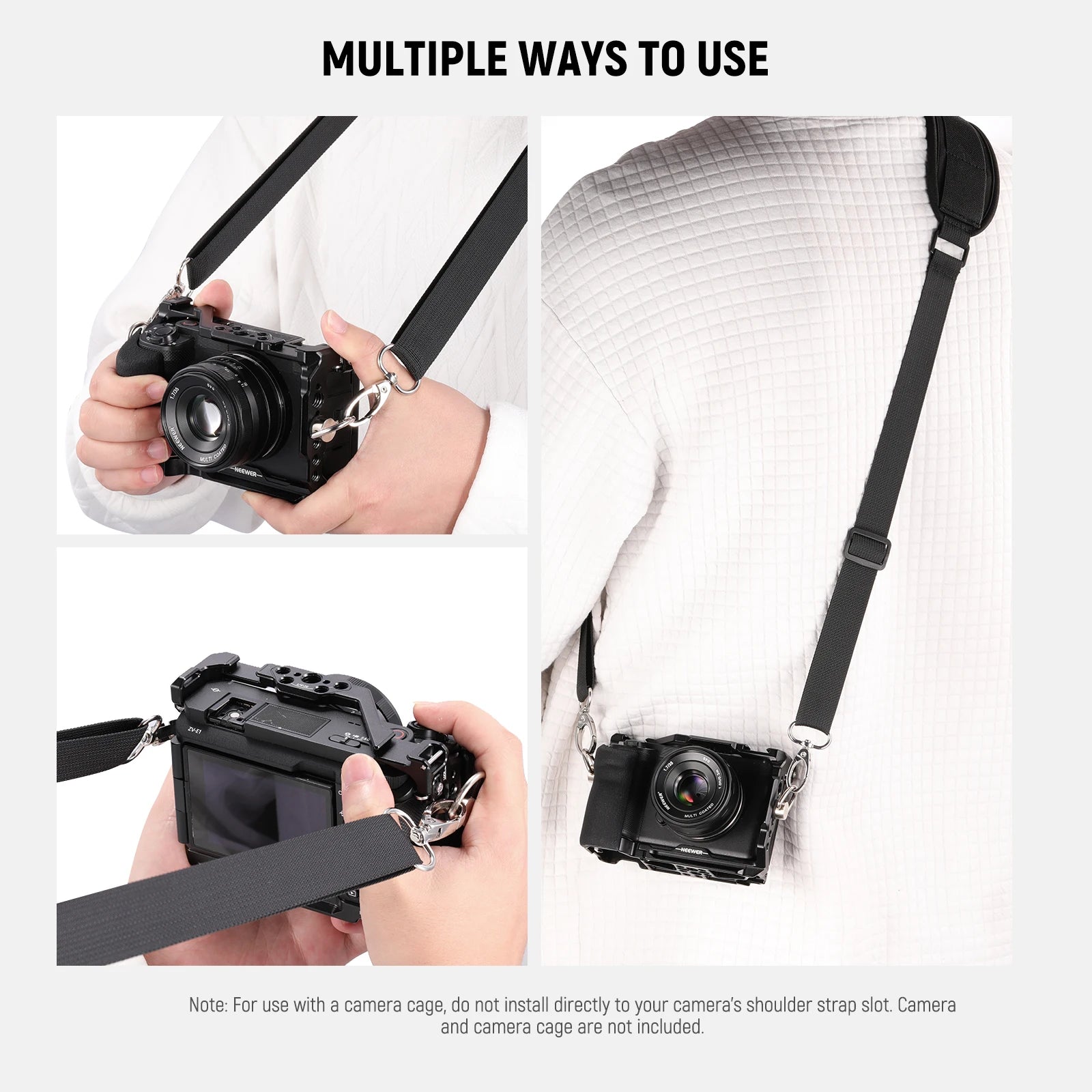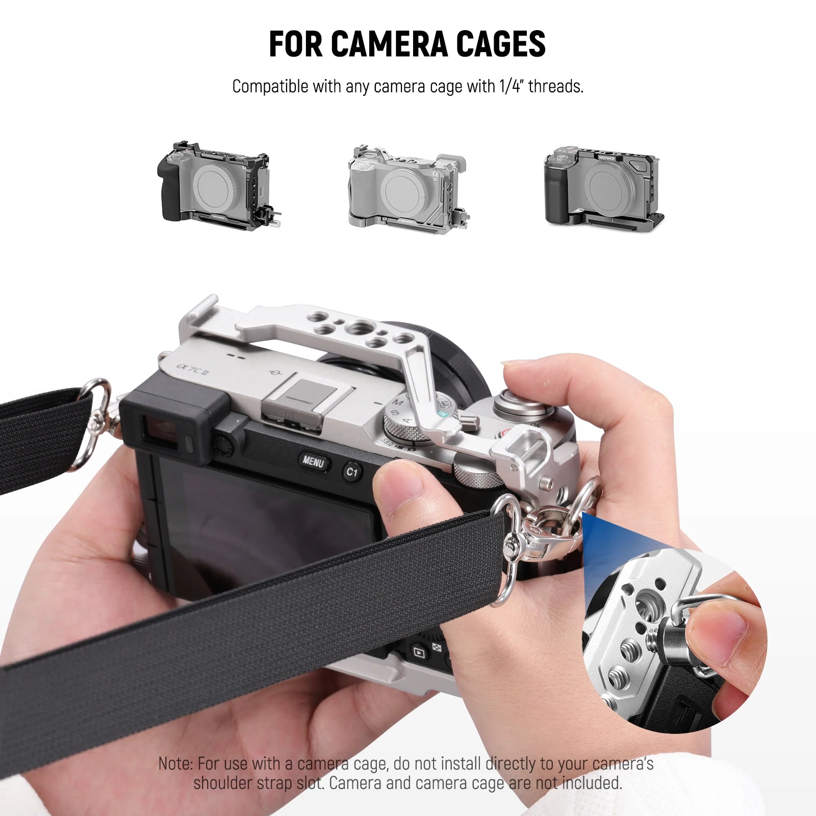 This shoulder strap can attach to a phone cage or a camera cage via two 1/4" screw D rings. It helps reduce fatigue for long handheld shooting sessions and improves stability for capturing professional vlogs, YouTube/TikTok videos, and photography.