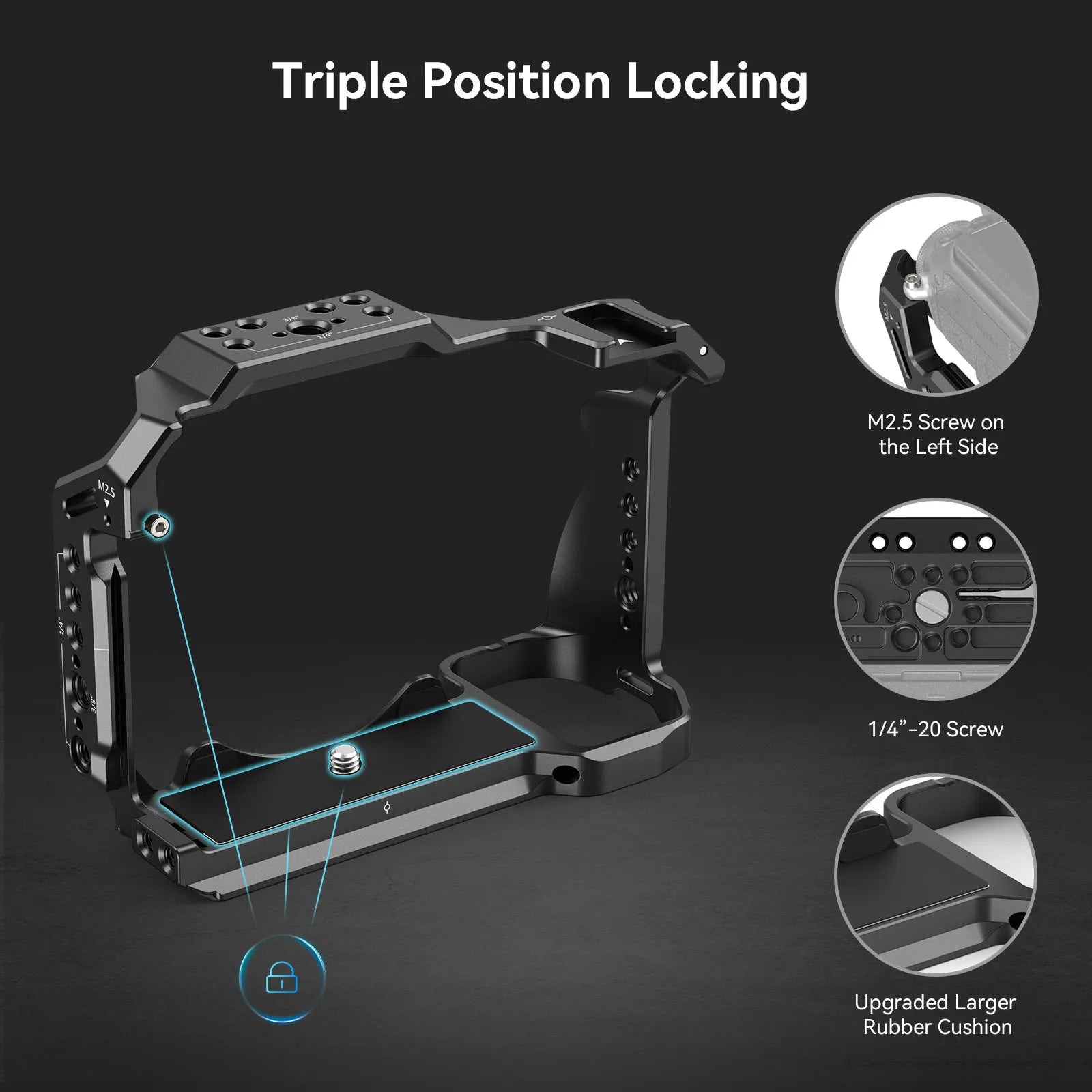 2. Locks camera via 1/4"-20 & M2.5 screw to prevent twisting;