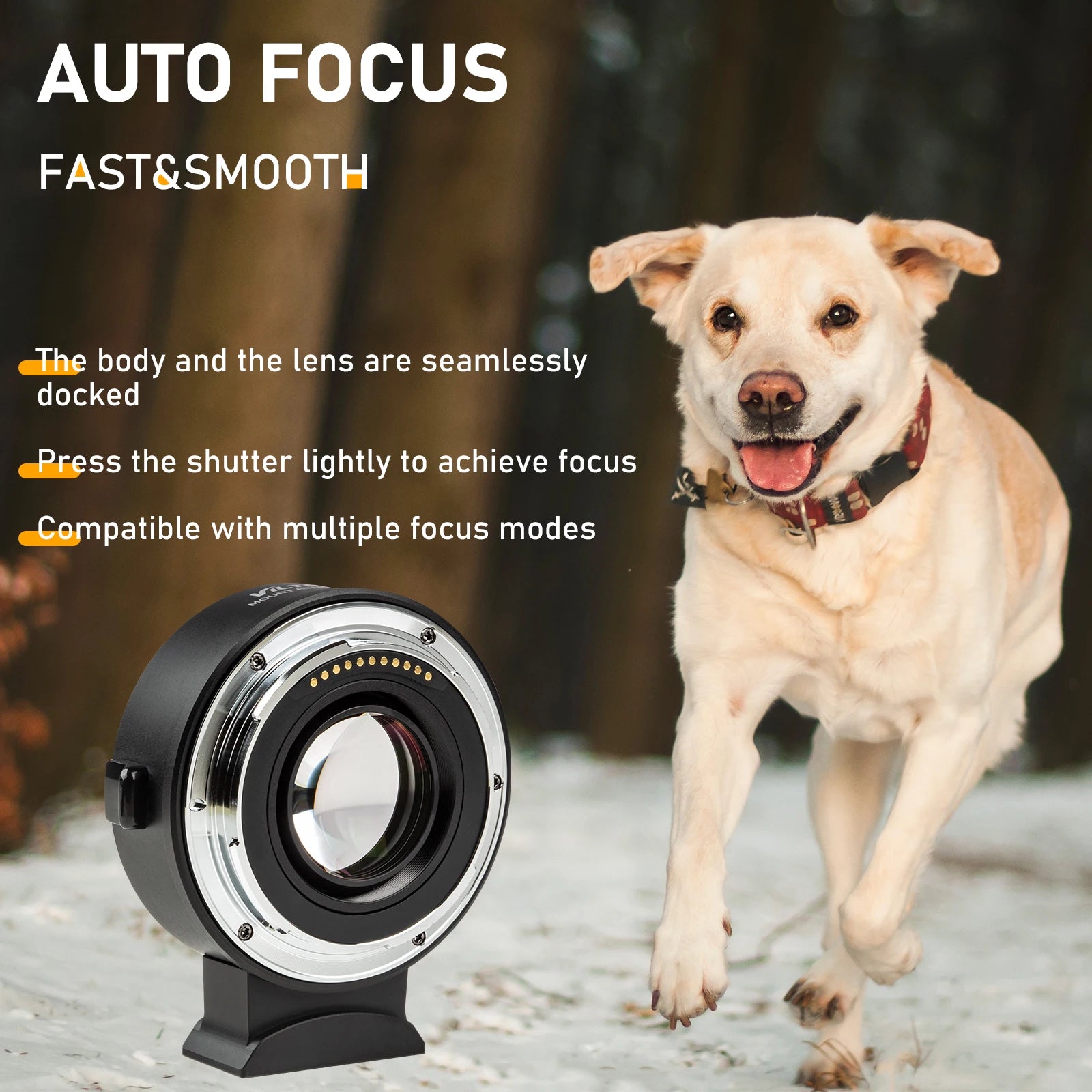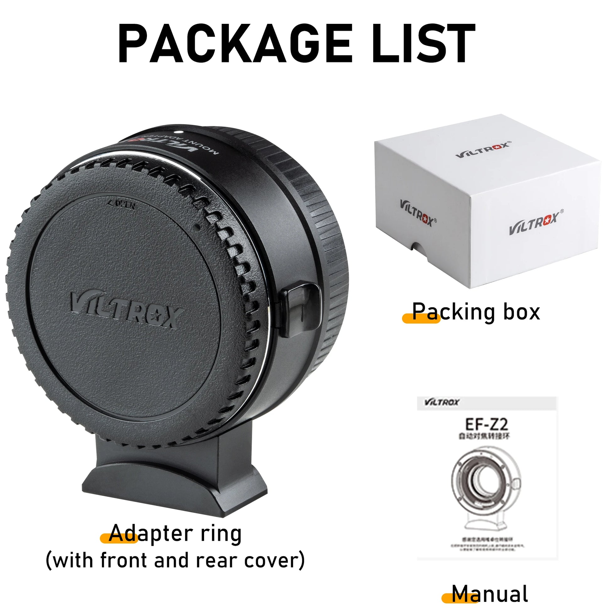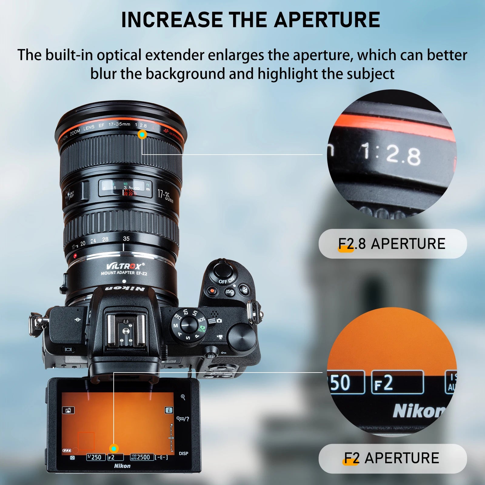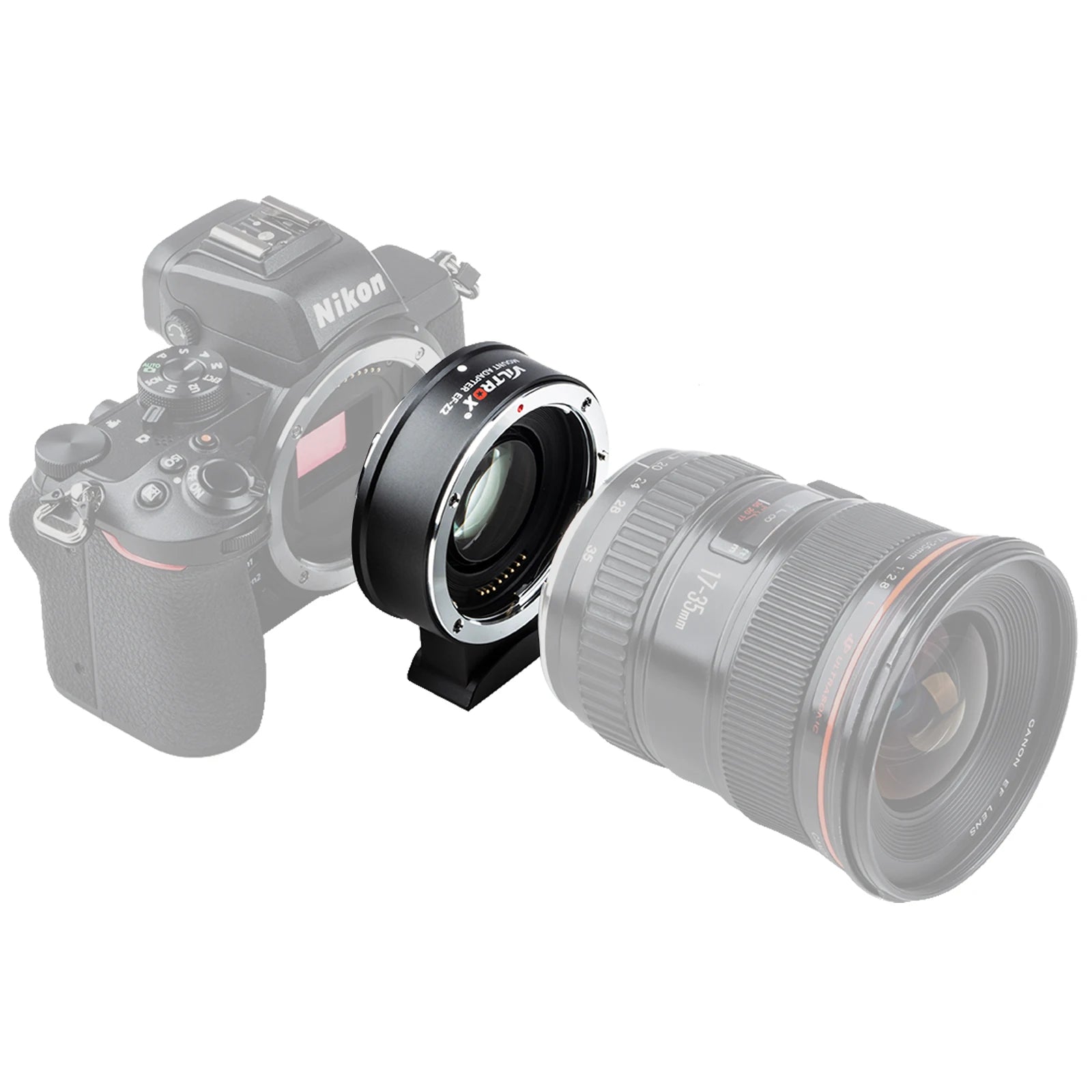 Viltrox EF-Z2 speed booster allows your Nikon Z6,Z7 or Z 50 to have more lens options among EF-mount series, keeping the lens native AF, stabilization performance as well as supports Nikon's Face and Eye Detection AF. It also features 0.71x equivalent focal length based on the original focal length and increase your camera's aperture by 1 stop.