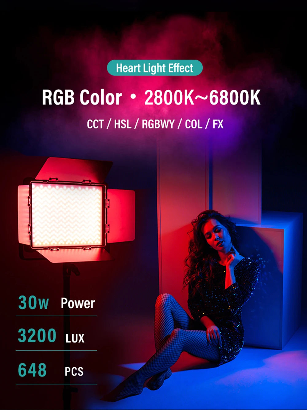 It is not only an RGB lamp, but also a two-color warm light lamp, supporting 4K, 8K video shooting; Wide color changing area, suitable for more different shooting scenes.