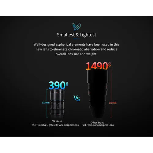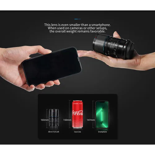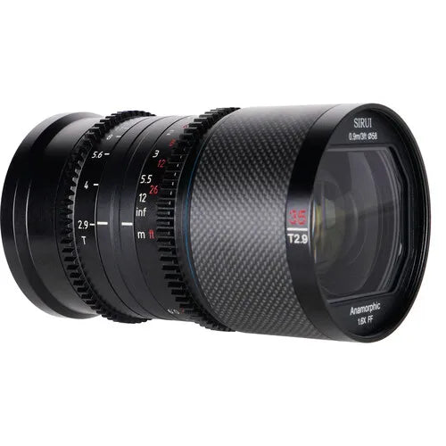 The Sony E-mount Saturn 35mm T2.9 1.6x Carbon Fiber Anamorphic Lens from Sirui provides a classic anamorphic look in a compact, lightweight form. Ideal for gimbal, stabilizer, drone, and handheld use, this lens produces a wider look equivalent to a 22mm spherical full-frame field of view. It measures only 4" in length and features a carbon fiber barrel that reduces the weight of the lens. The lens produces horizontal neutral streaks when pointed at a light source, giving your footage a classic anamorphic look.