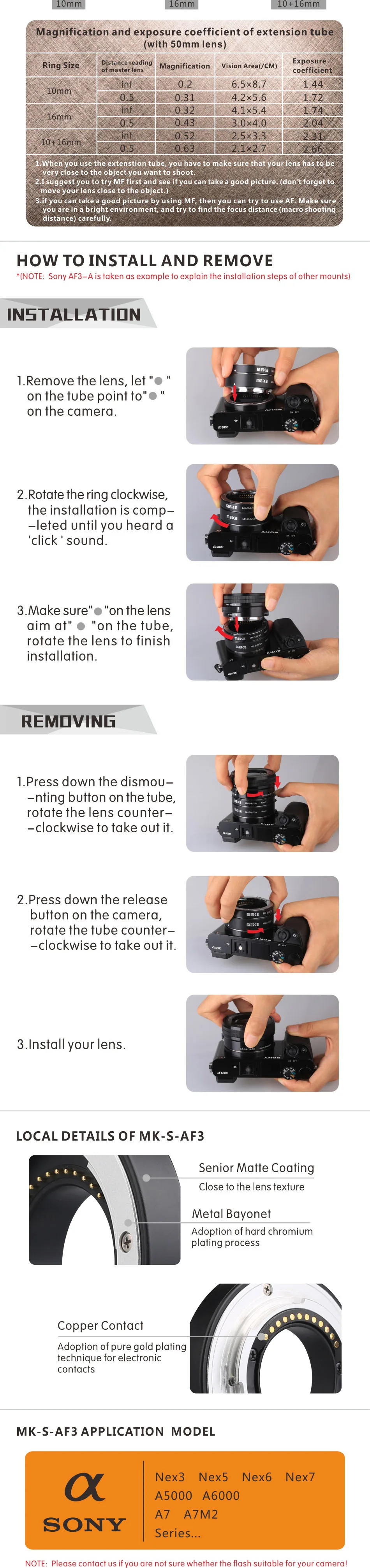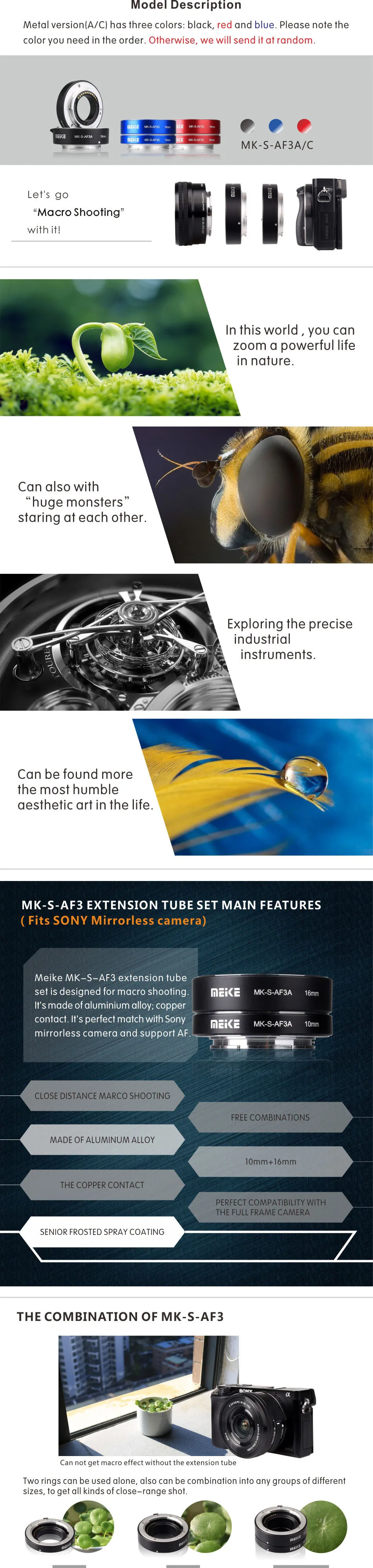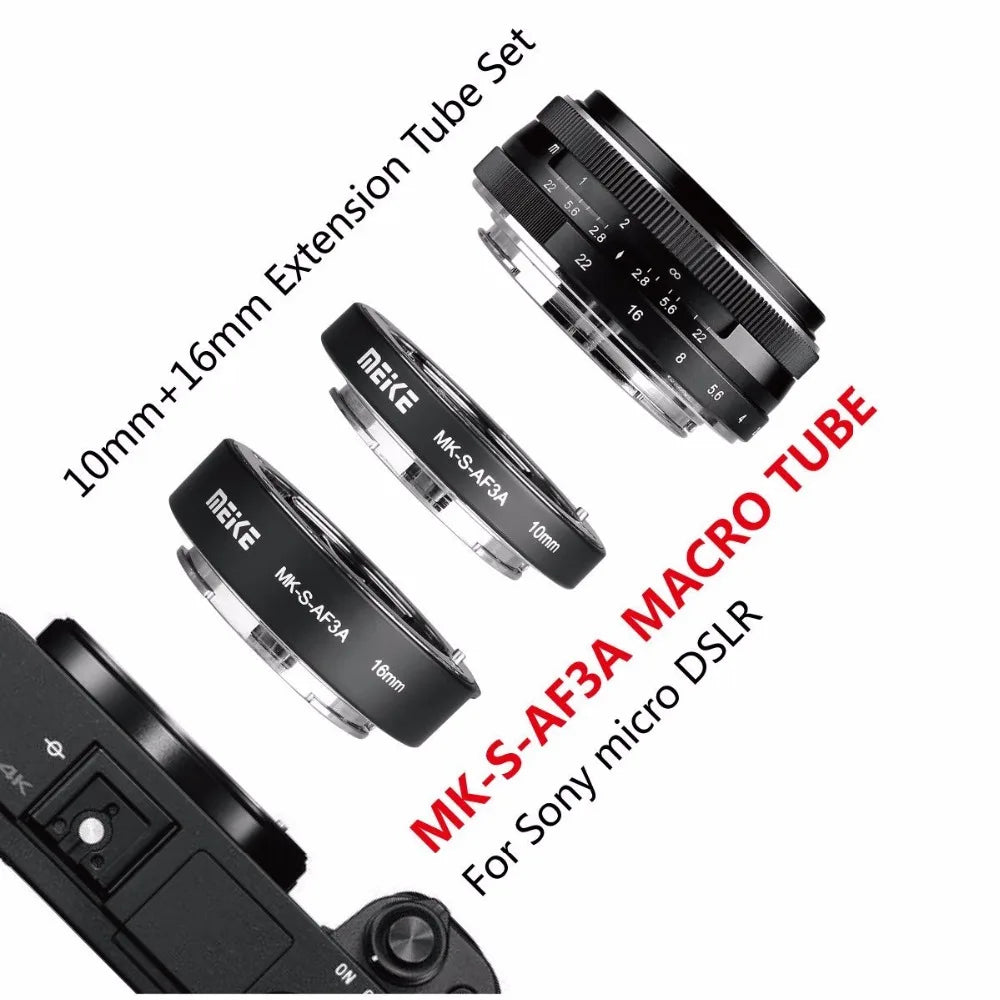 Meike MK-S-AF3A Metal AF Macro Extension Tube Auto Focus Adapter ring 10mm 16mm for Sony Mirrorless A7 NEX E-Mount Camer